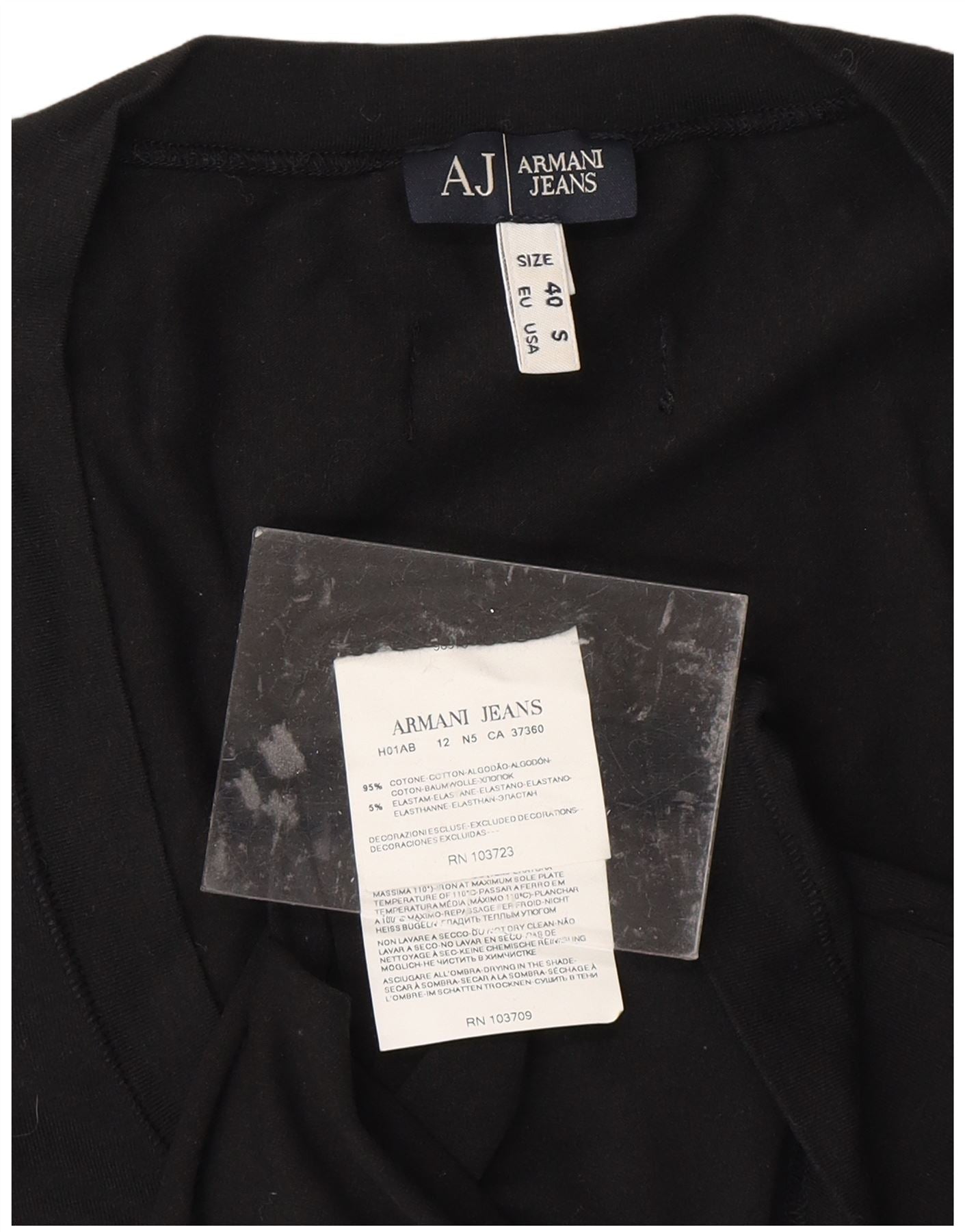 ARMANI JEANS Top feminino manga comprida Reino Unido 10 pequeno algodão preto
