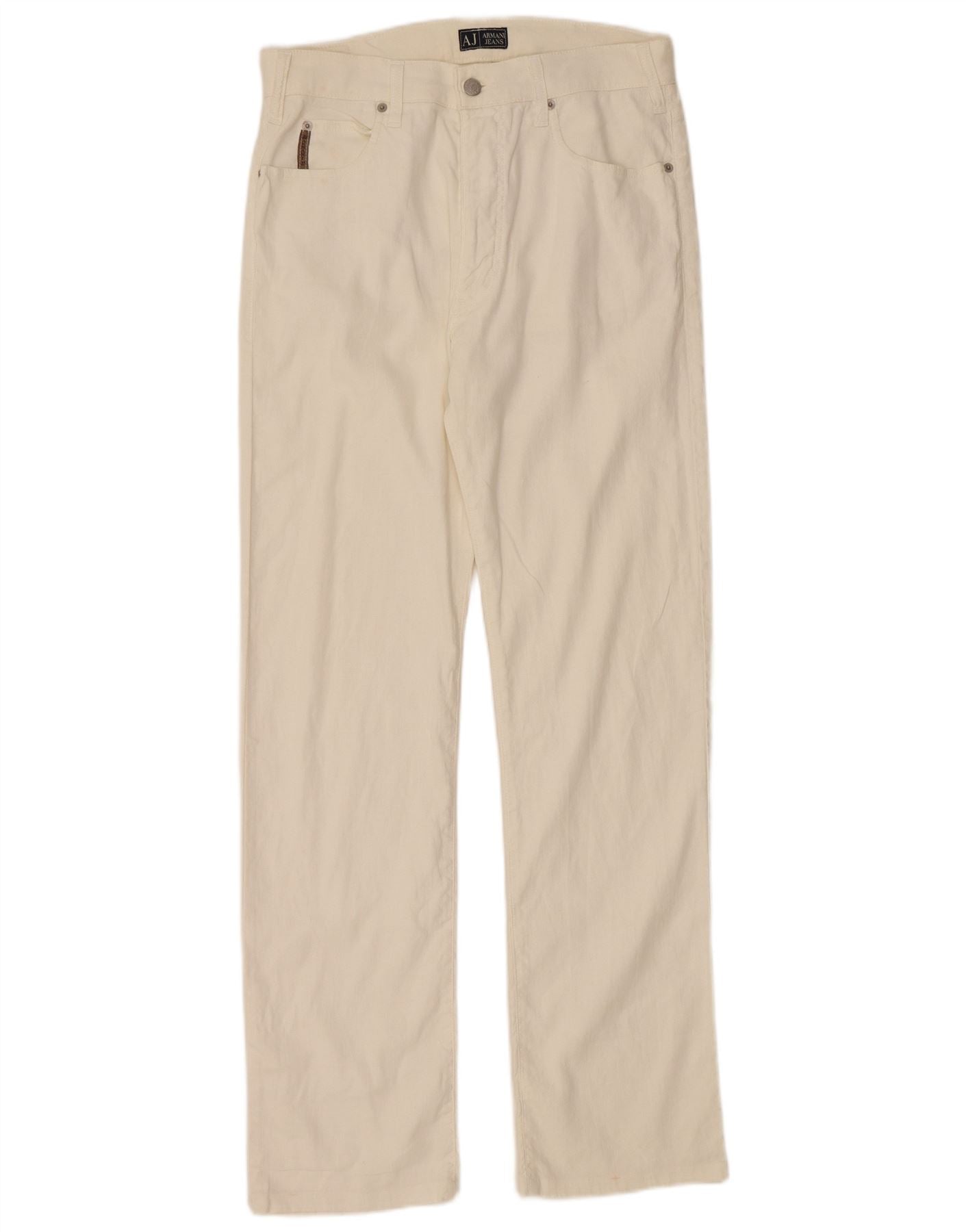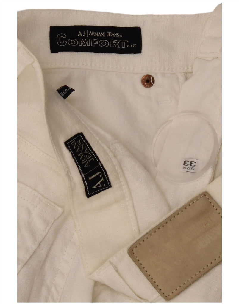 ARMANI Masculino Comfort Fit Calça Casual Reta W33 L32 Algodão Branco
