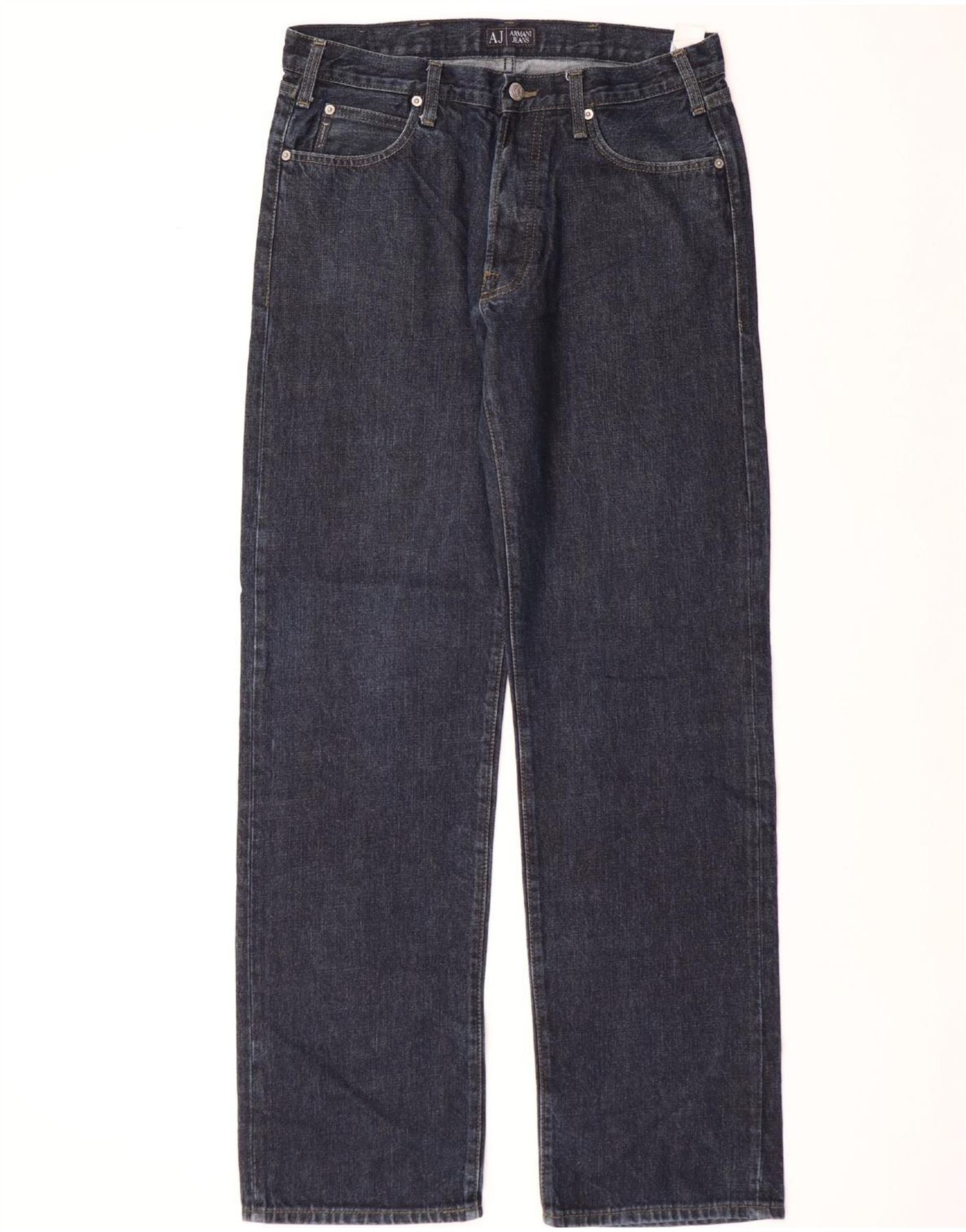- Descrição da IA: Estes jeans retos masculinos da Armani Jeans são confeccionados em jeans 100% algodão em um rico azul marinho. Eles apresentam uma perna reta clássica e um ajuste regular para maior conforto. O fecho de botão garante um uso seguro. Bolsos práticos estão incluídos e um logotipo sutil adiciona reconhecimento à marca. Este ajuste clássico oferece estilo e versatilidade atemporais.