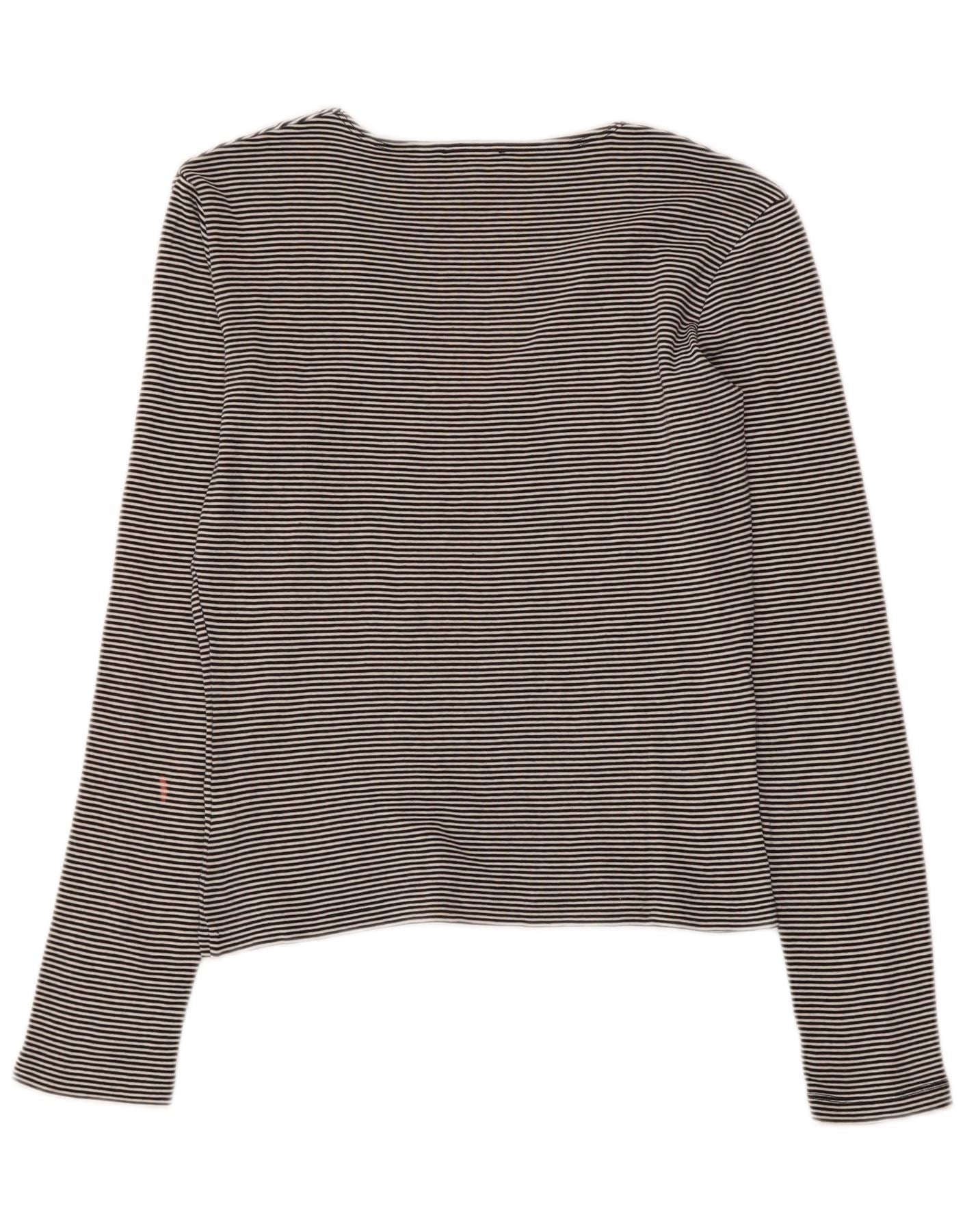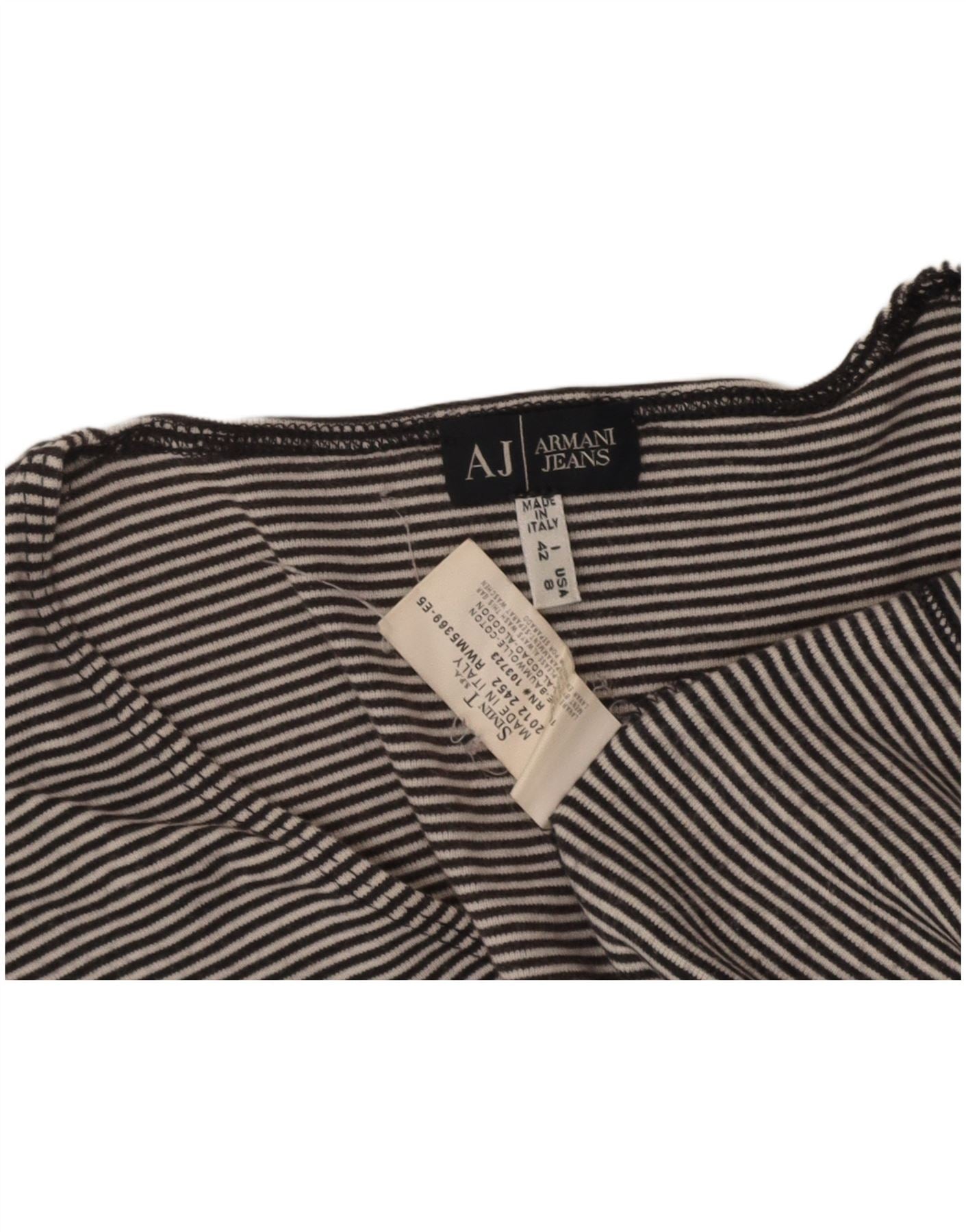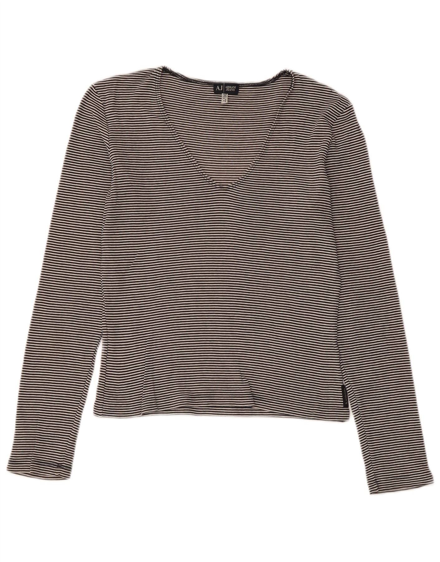 ARMANI Top feminino de manga comprida UK 12 médio azul marinho risca de giz náutico