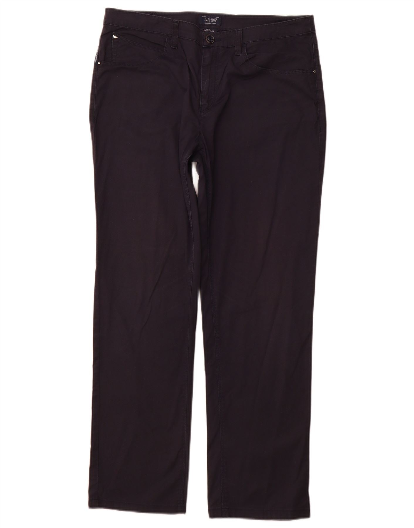 ARMANI Calça feminina reta casual Magnólia W31 L28 algodão azul marinho