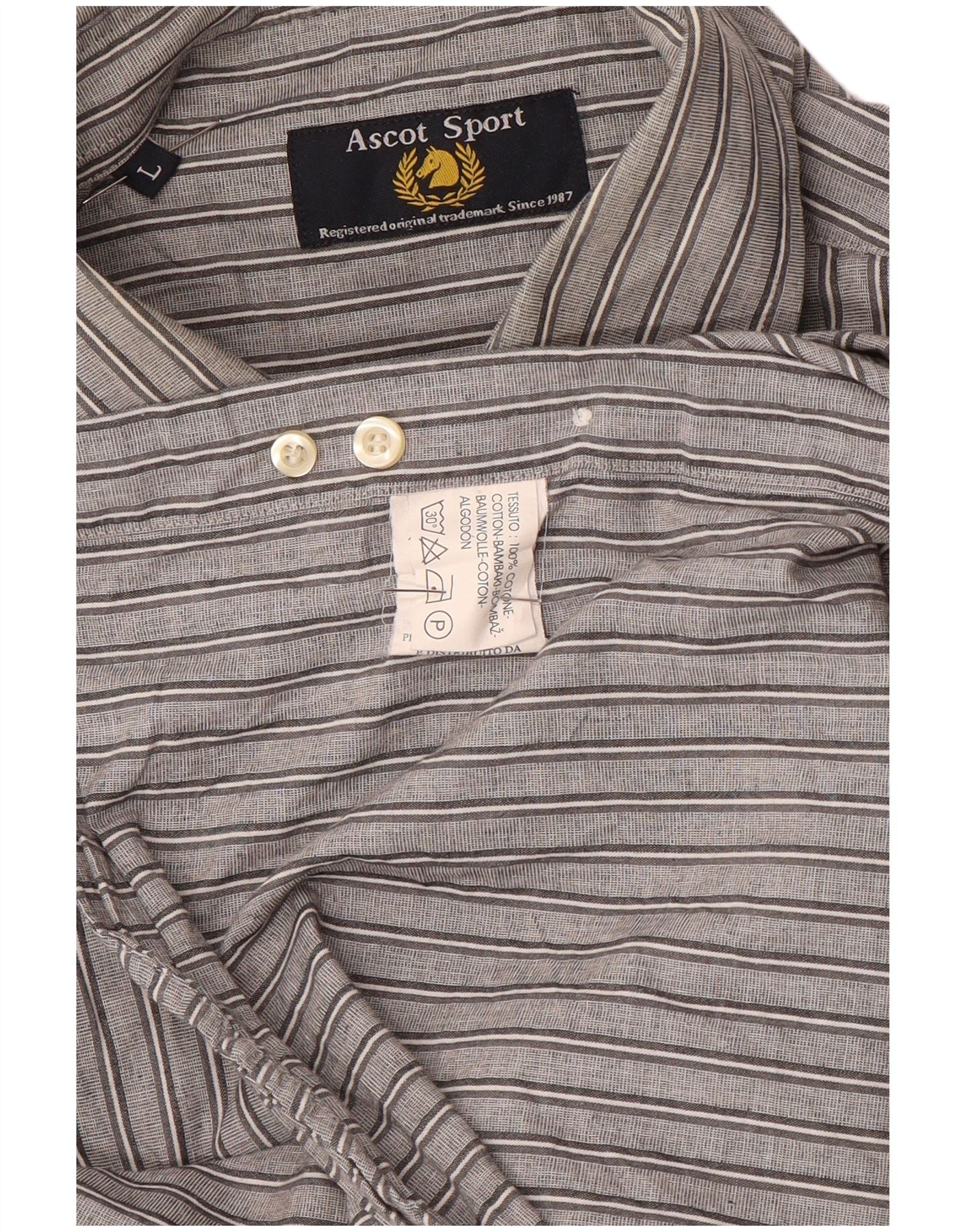 Camisa masculina ASCOT SPORTS grande algodão listrado cinza