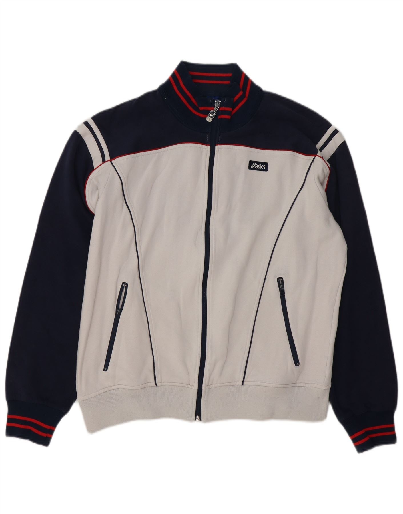 Home > Roupas vintage Asics > Roupas masculinas vintage Asics > Tops de treino > ASICS Mens Graphic Tracksuit Top Jaqueta grande bloco colorido branco