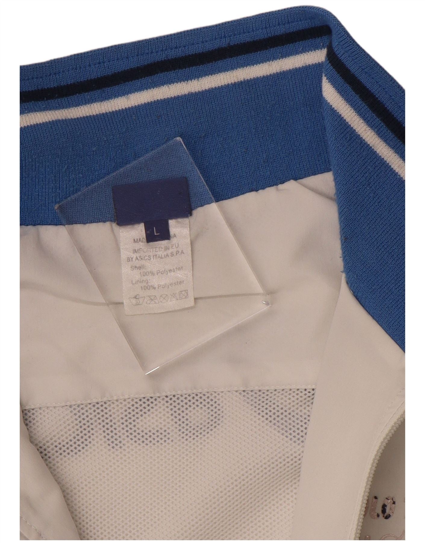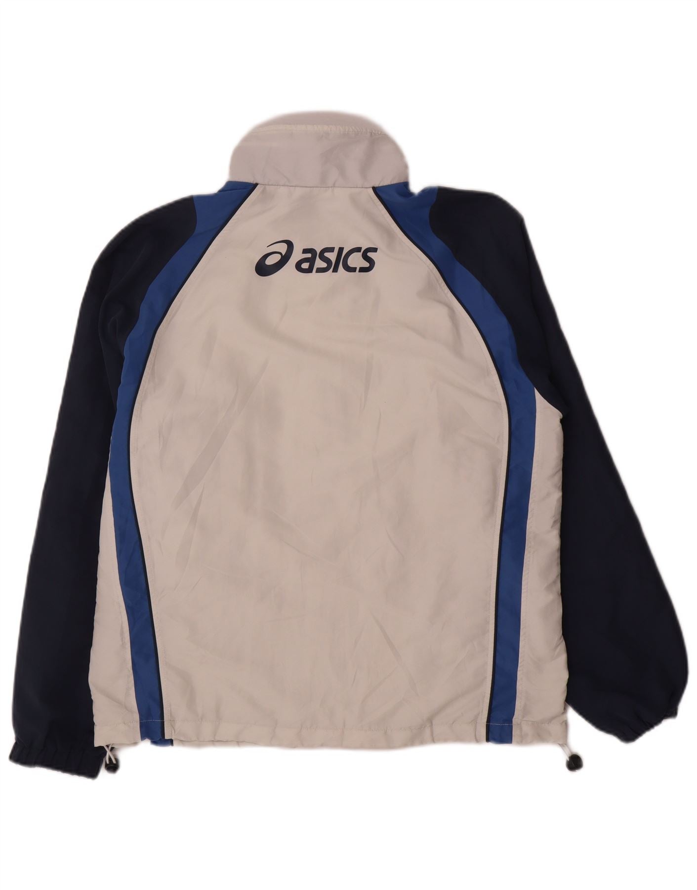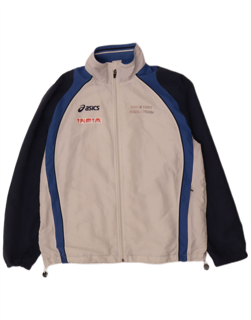 Jaqueta corta-vento masculina ASICS Graphic UK 40 grande bloco colorido branco
