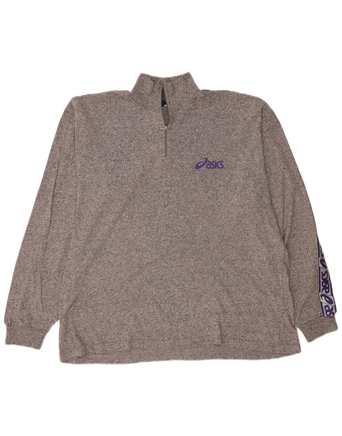 ASICS Mens Zip Neck Top Gráfico Manga Longa 2XL Cinza