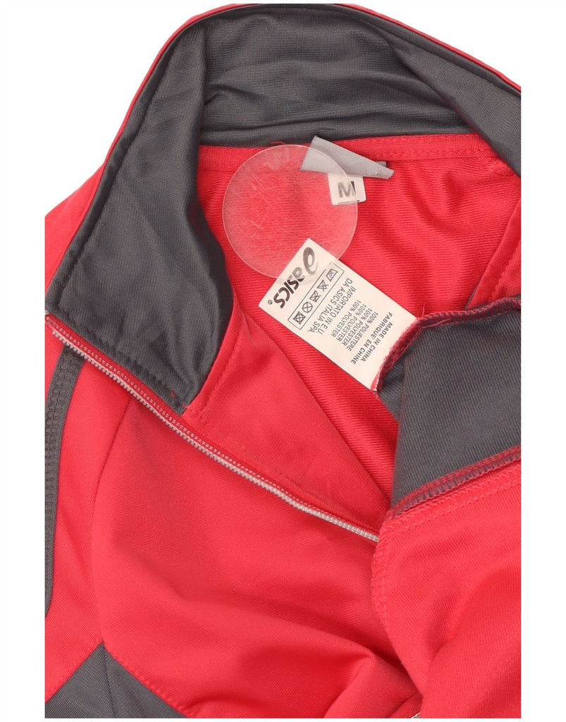 ASICS Womens Graphic Tracksuit Top Jacket UK 12 Medium Red Colourblock