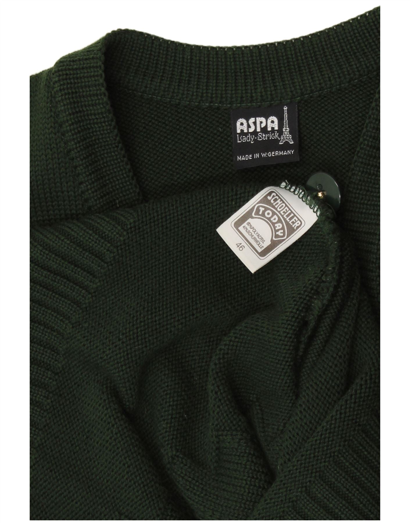Suéter cardigã feminino gráfico sem mangas Aspa EU 46 XL verde poliacrílico