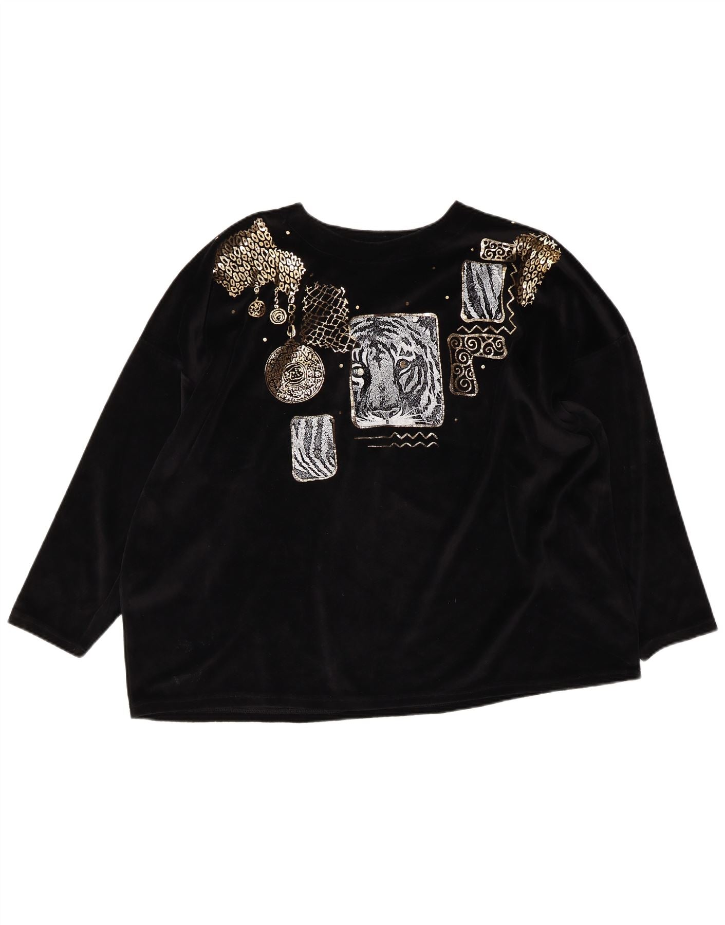 ATELIER GOLDNER SCHNITT Top gráfico feminino manga comprida UE 54 3XL preto