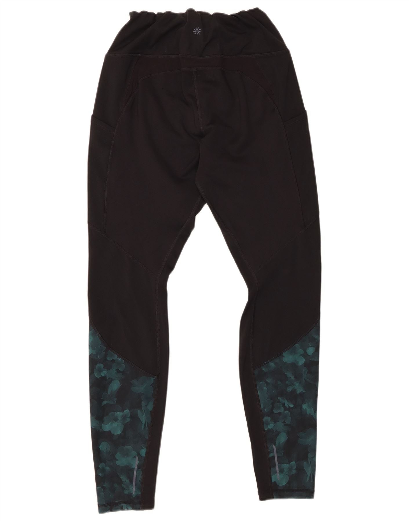 Leggings femininos ATHLETA UK 12 poliéster floral preto médio