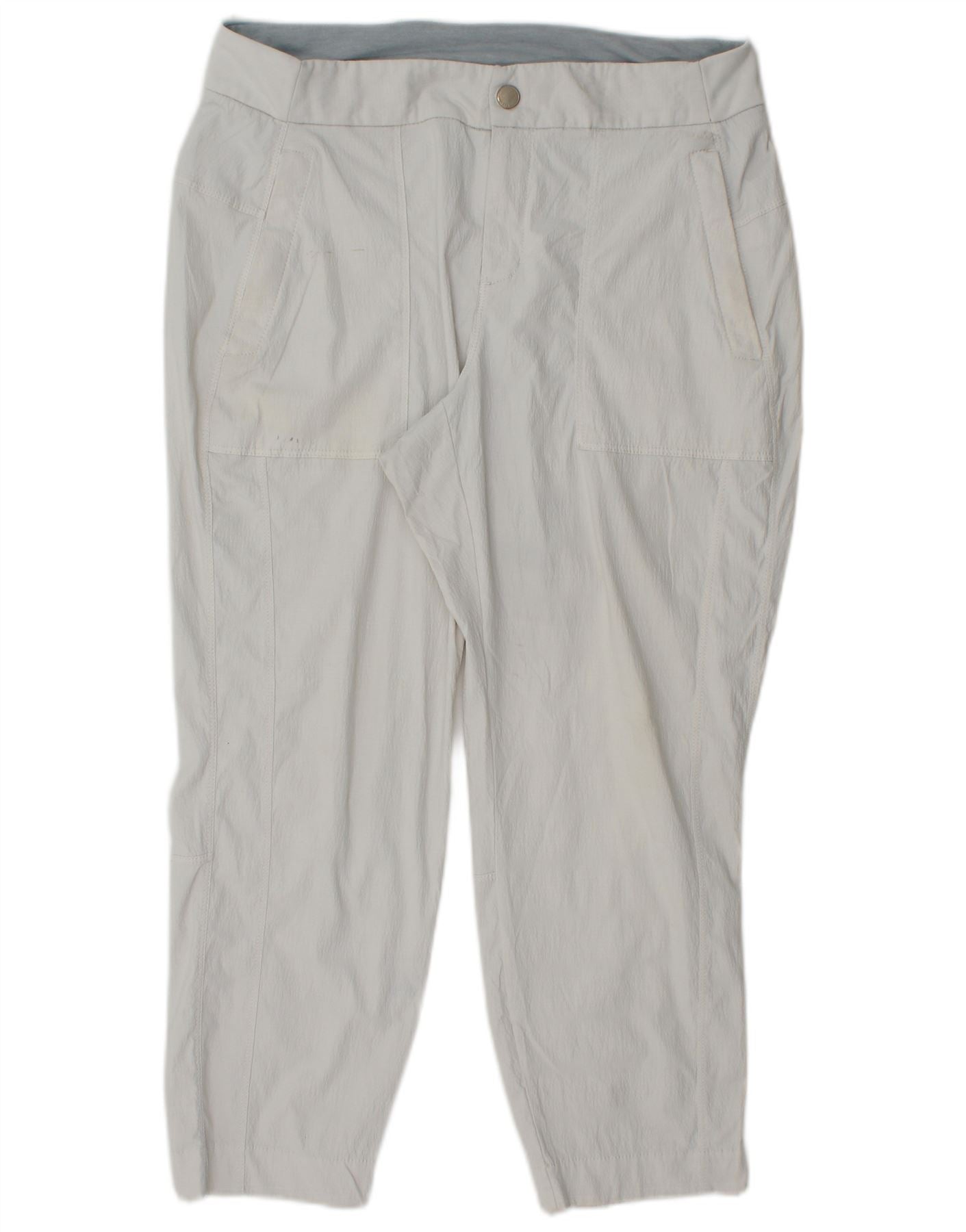 Calça feminina ATHLETA reta cortada EUA 12 grande W32 L24 nylon branco