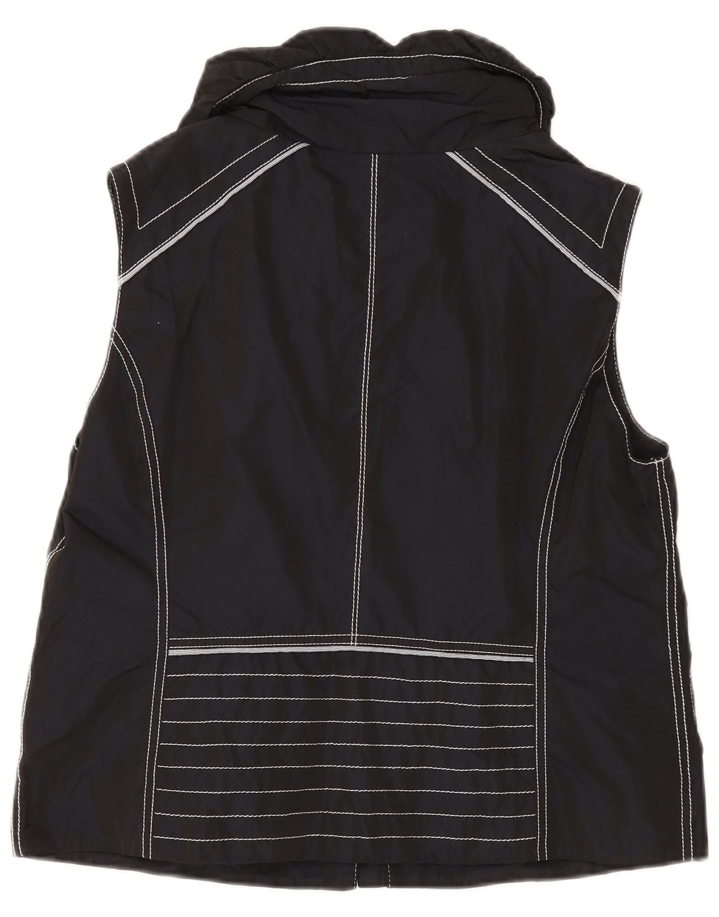- Descrição da IA: Um elegante colete preto Avant Garde para mulheres, perfeito para usar em camadas. Esta peça sem mangas apresenta um capuz confortável, zíper frontal completo e dois bolsos com zíper para maior praticidade. O design é aprimorado com detalhes contrastantes de costura branca e um estilo moderno e casual. Confeccionado em 100% poliéster, oferece caimento regular e é ideal para dar um toque contemporâneo a qualquer look.