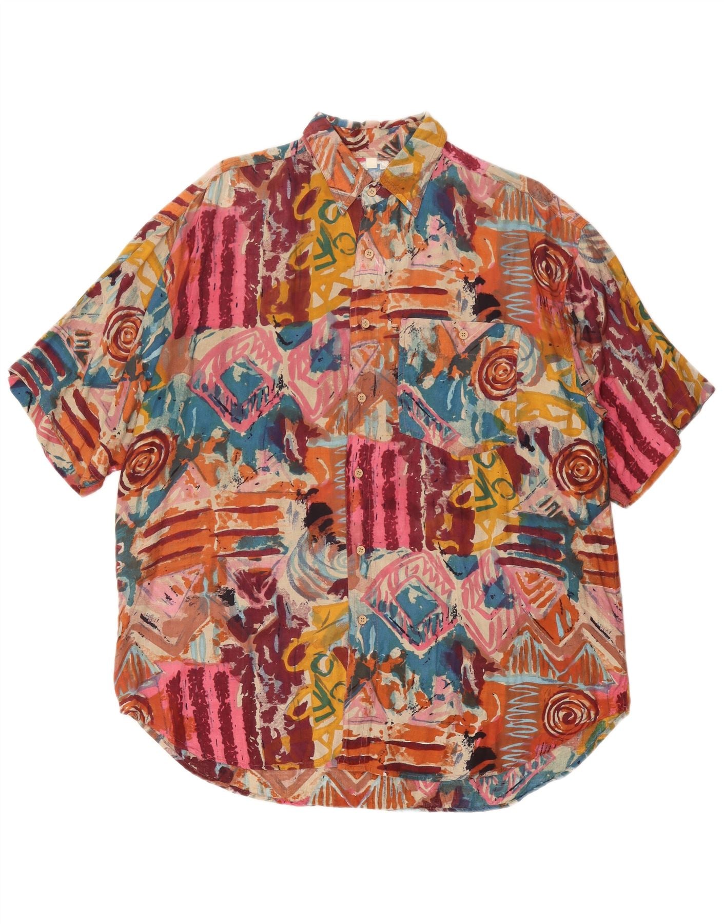Camisa masculina de manga curta AVANTI XL viscose geométrica multicolorida
