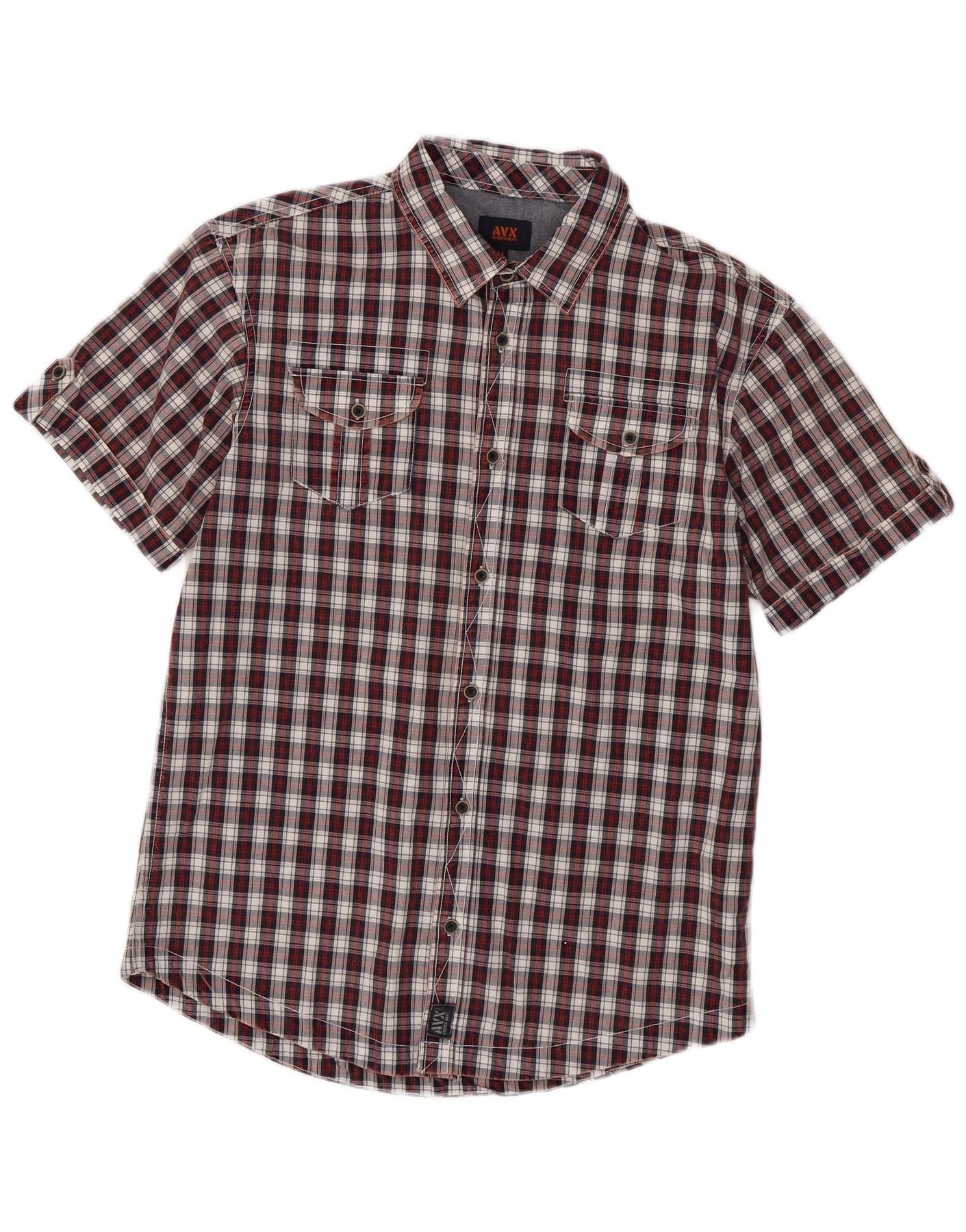 Home > Roupas vintage Avirex > masculino > Camisa masculina de manga curta Avirex, algodão xadrez vermelho médio