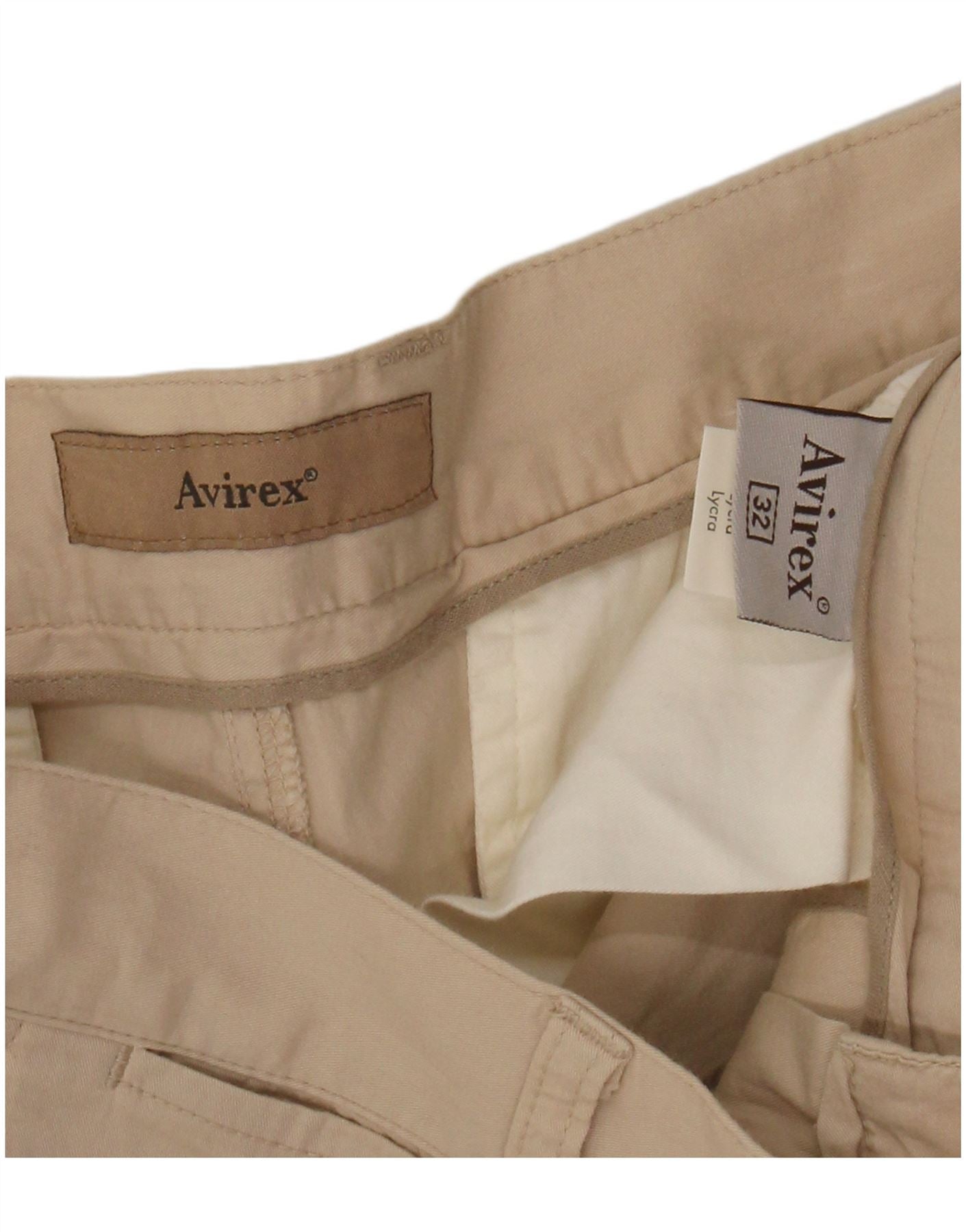 Calça chino reta masculina AVIREX W32 L31 algodão bege