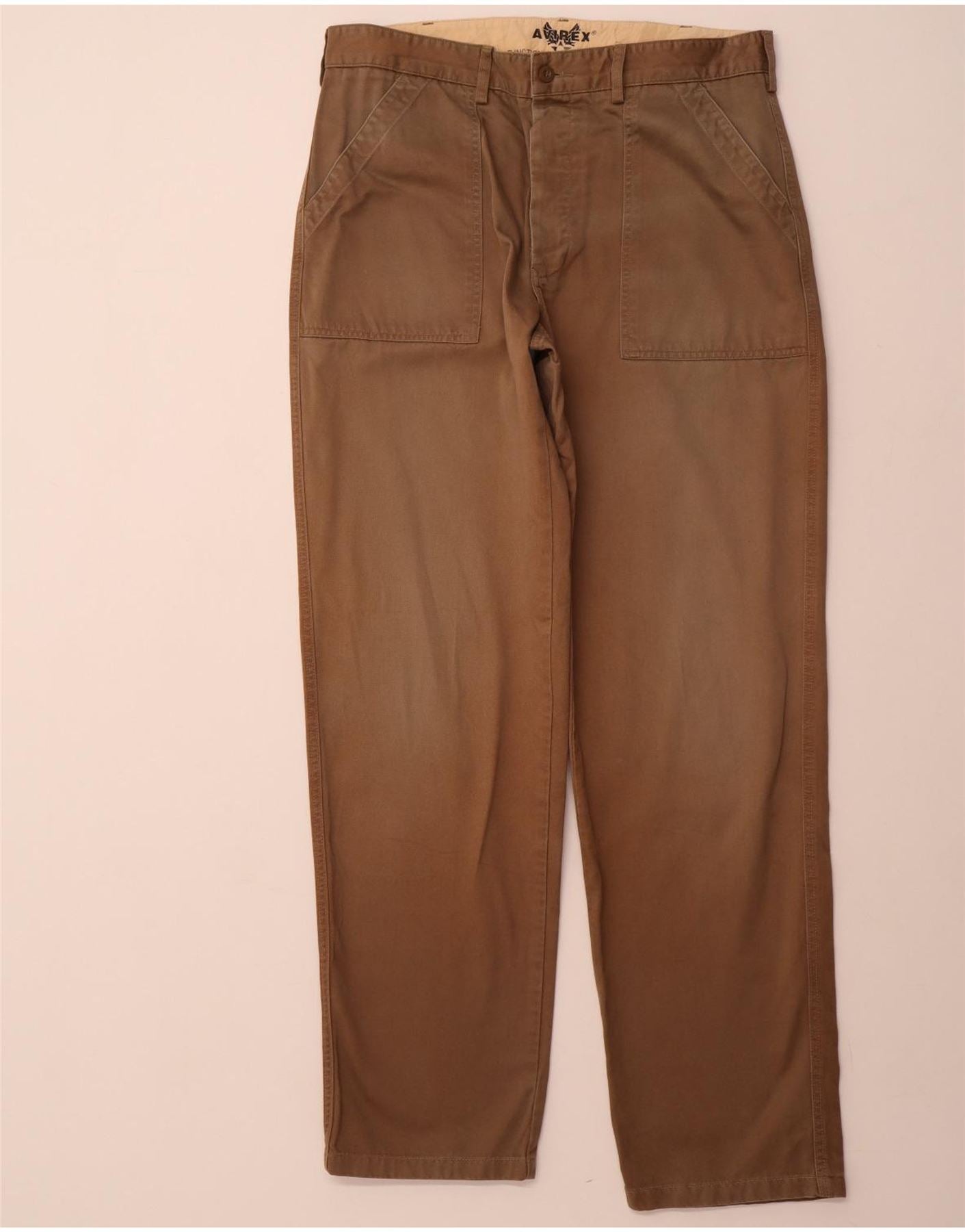 Calça chino reta masculina Avirex W34 L33 algodão marrom