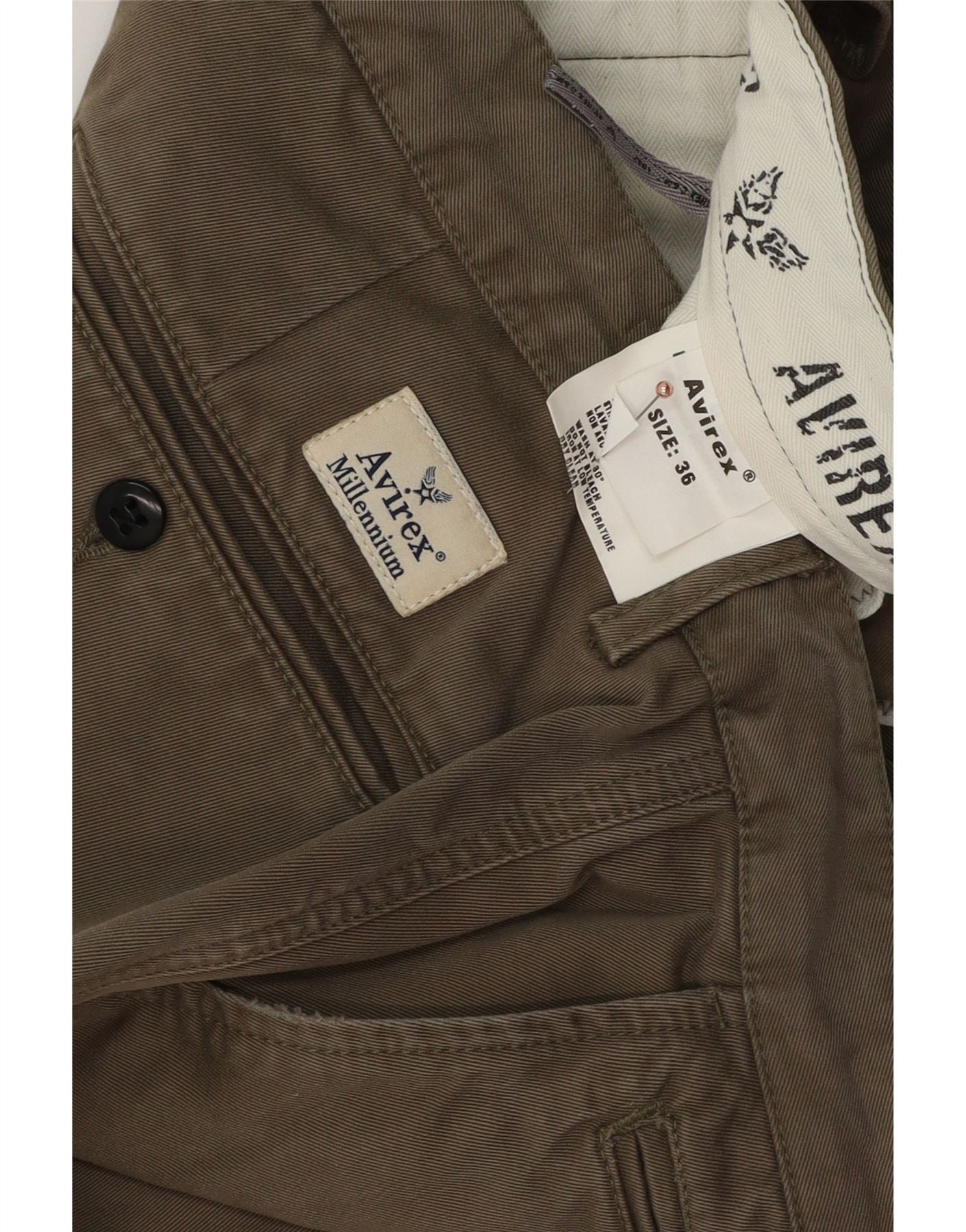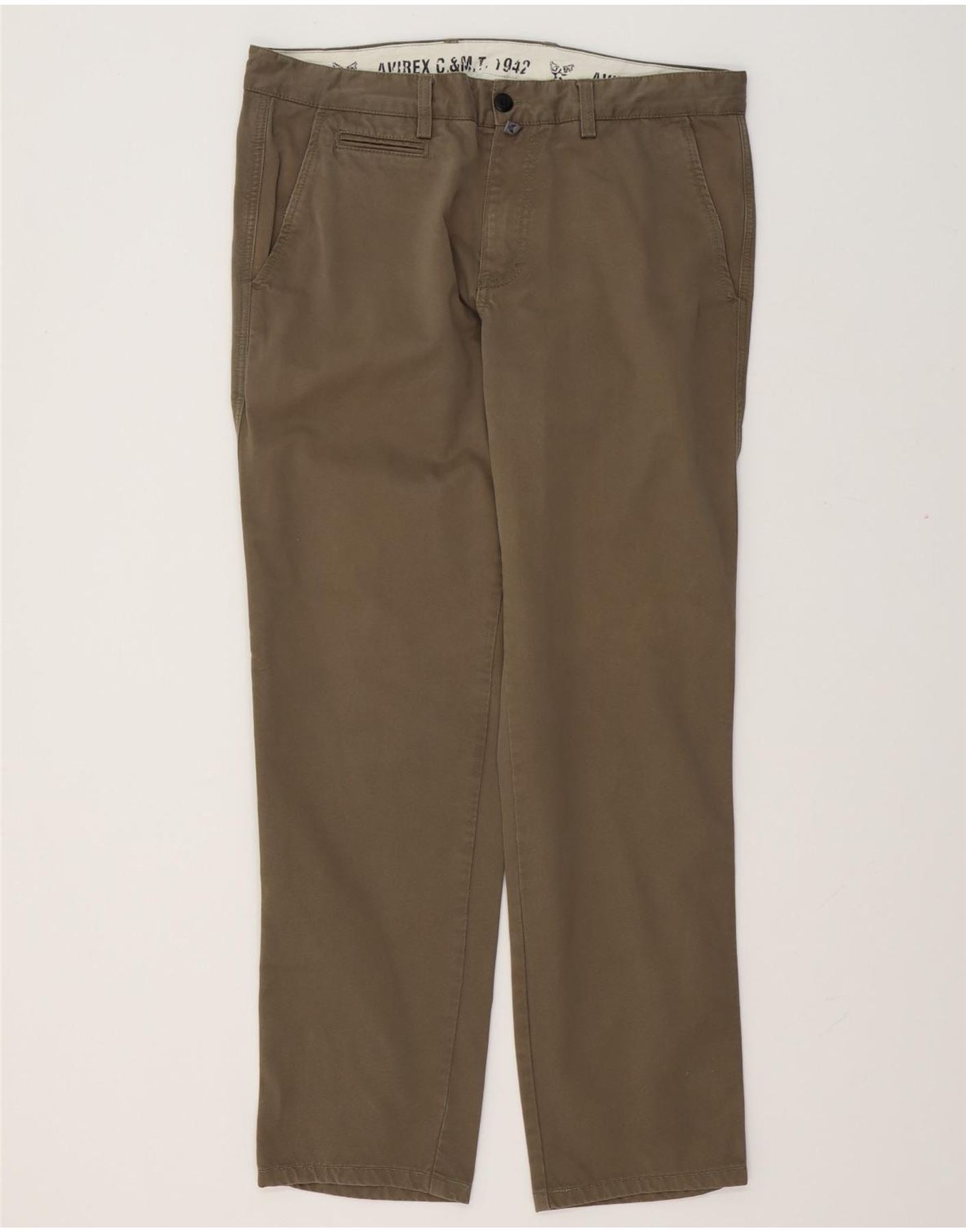 Calça chino masculina Avirex reta W36 L32 algodão cáqui