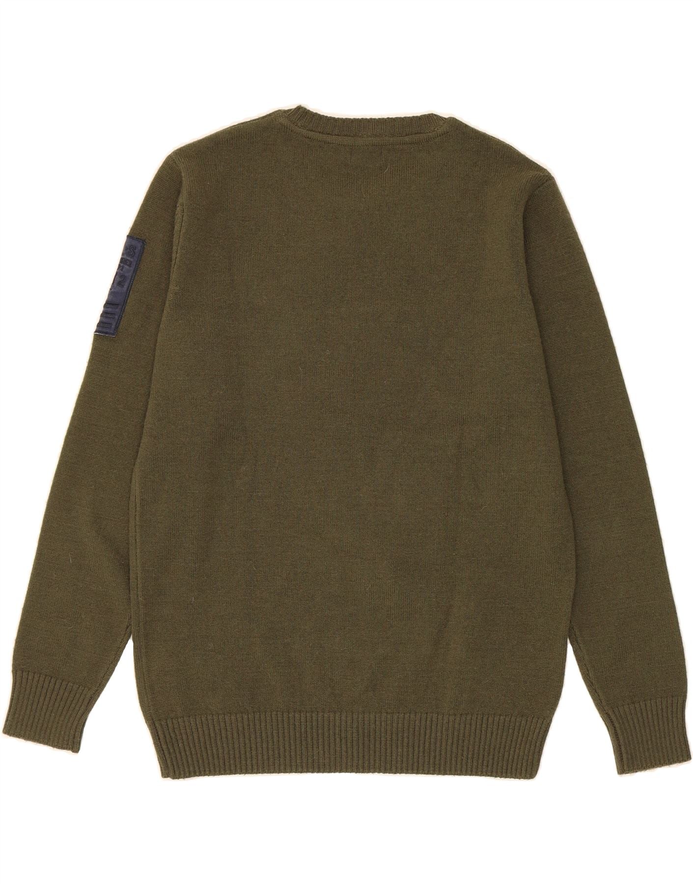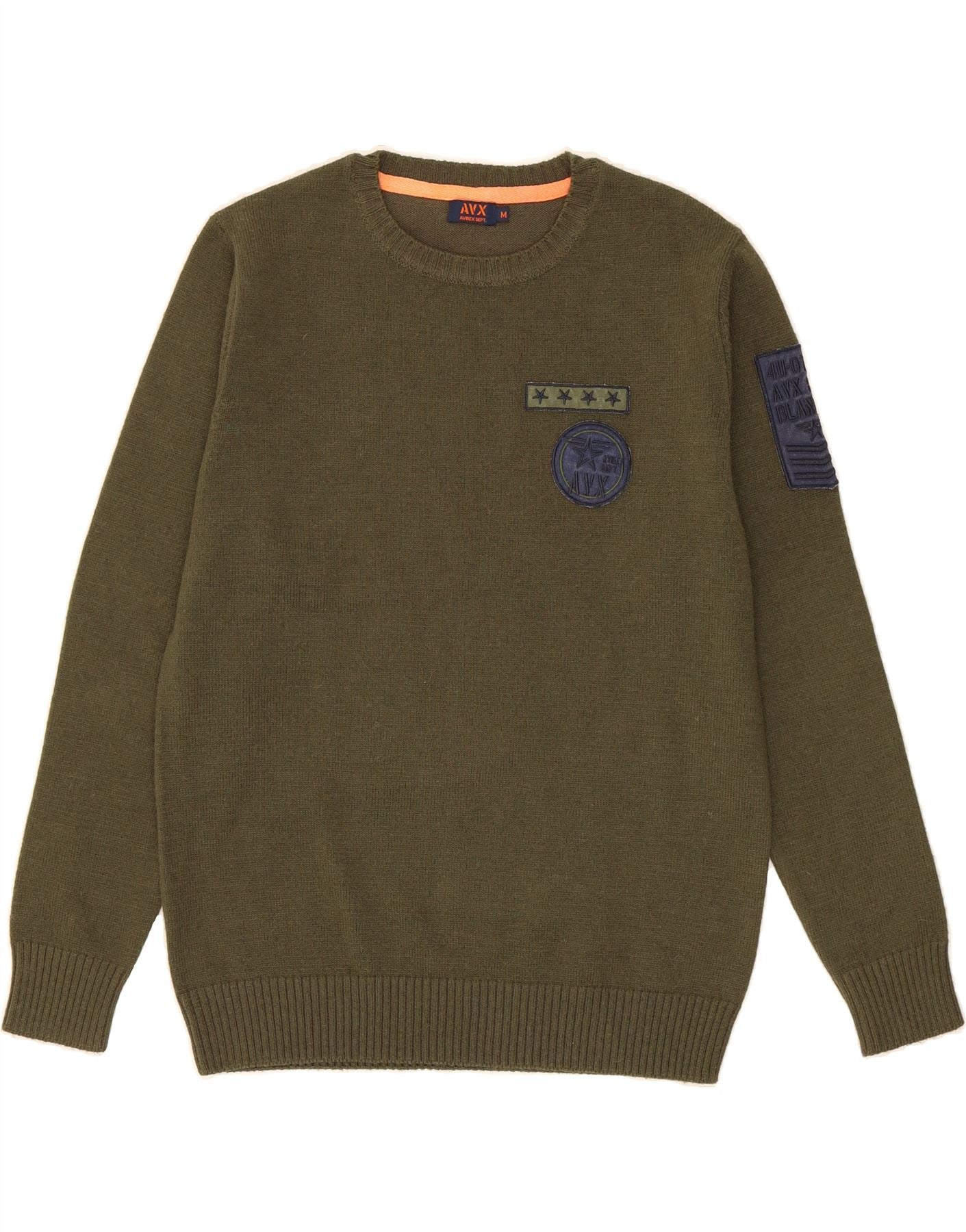 AVIREX Suéter feminino com gola redonda Reino Unido 14 médio cáqui poliacrílico