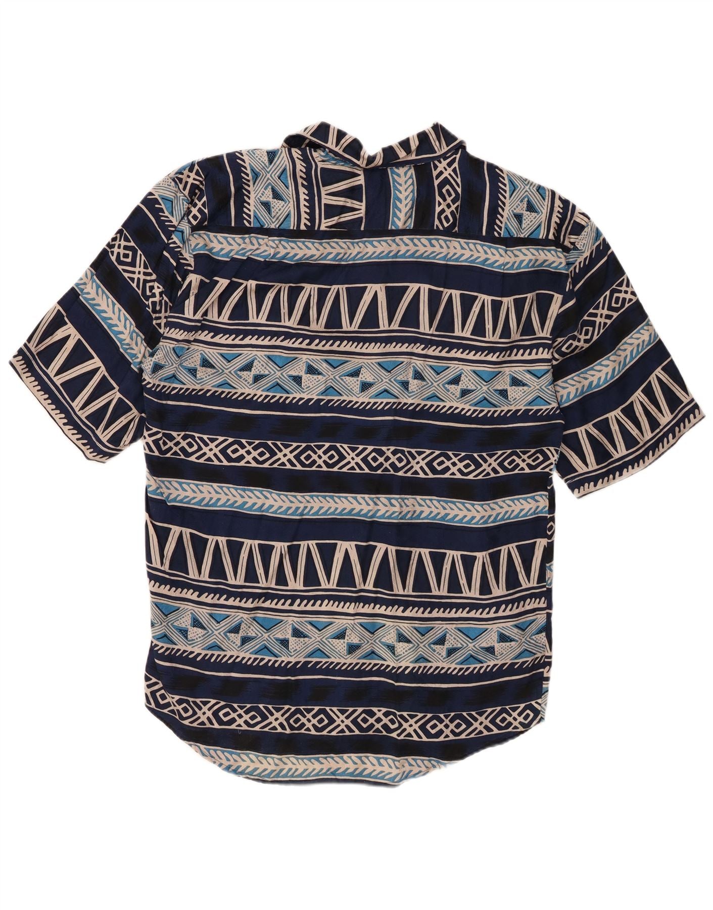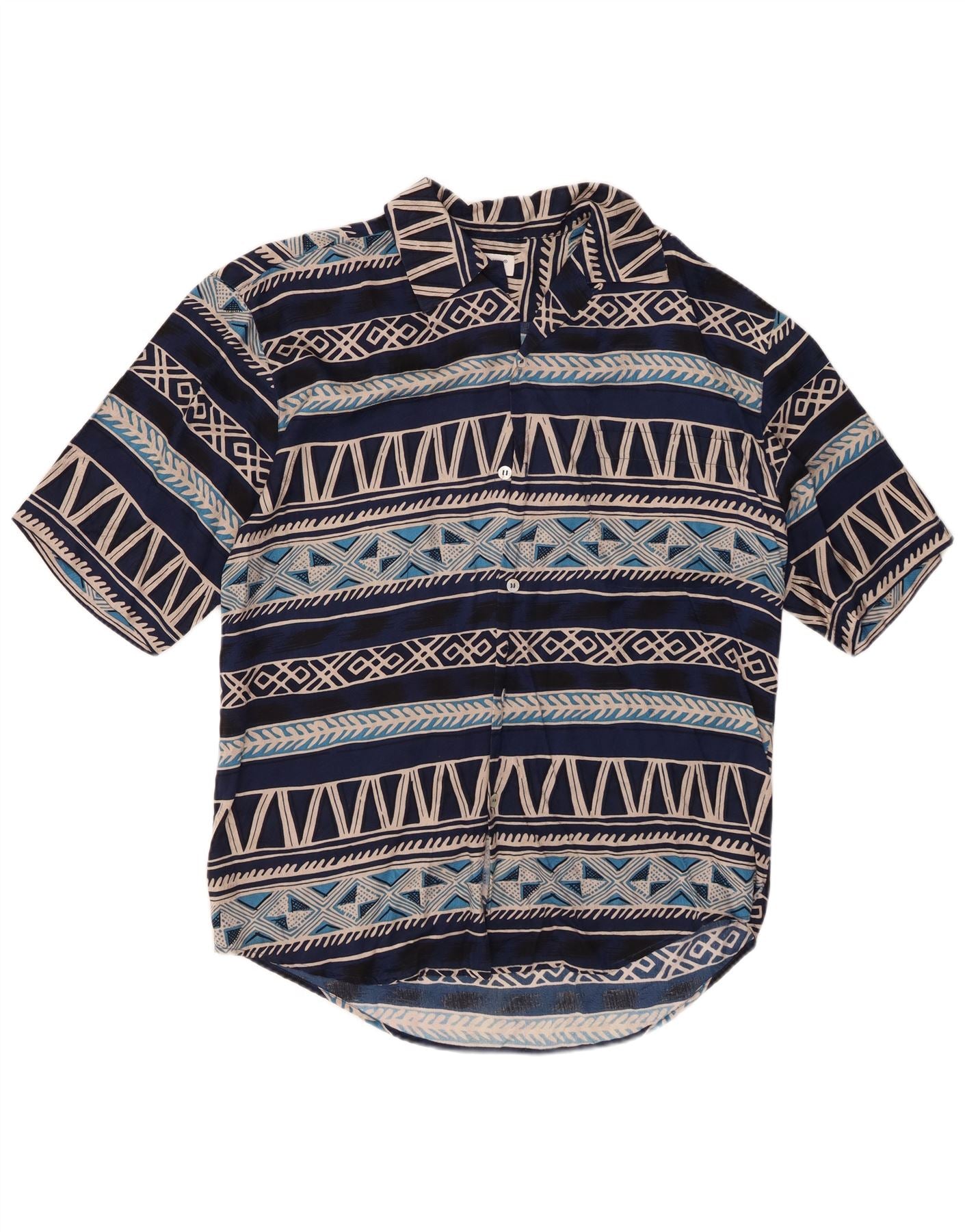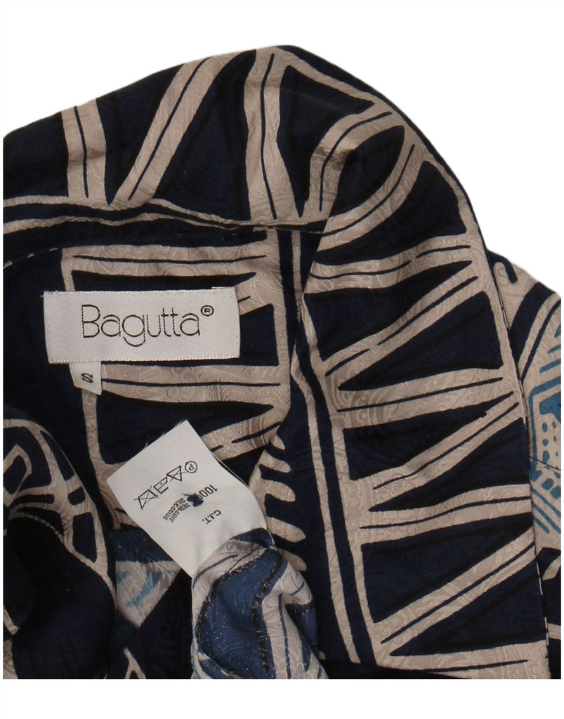 Camisa masculina de manga curta BAGUTTA pequena seda geométrica azul marinho