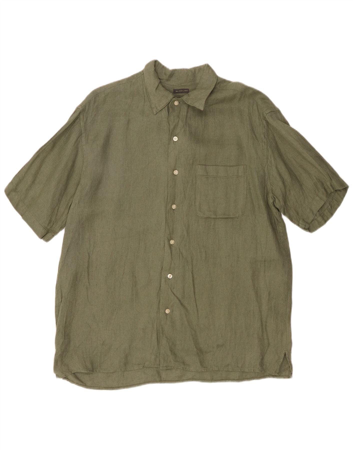 Home > Roupas vintage da Banana Republic > masculino > BANANA REPUBLIC Camisa masculina de manga curta com ajuste solto, linho cáqui médio