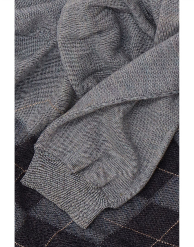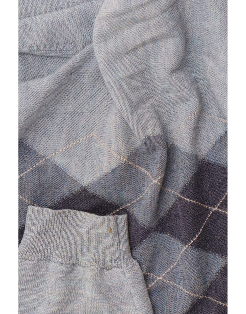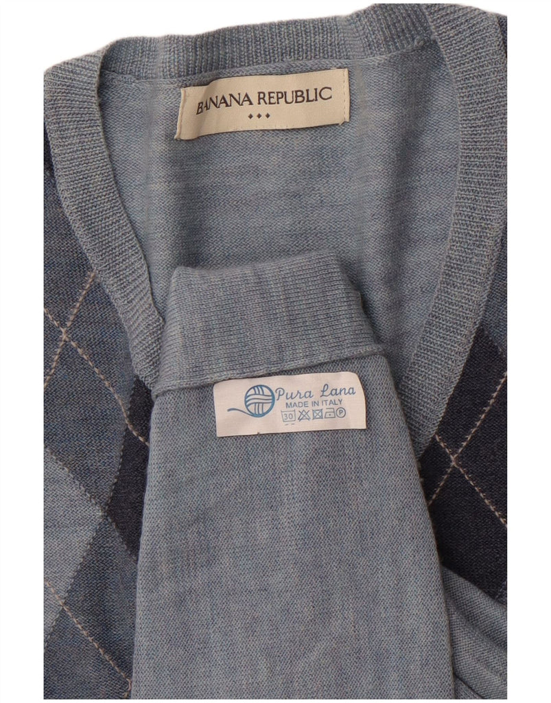 BANANA REPUBLIC Mens V-Neck Jumper Sweater Large Blue Argyle/Diamond