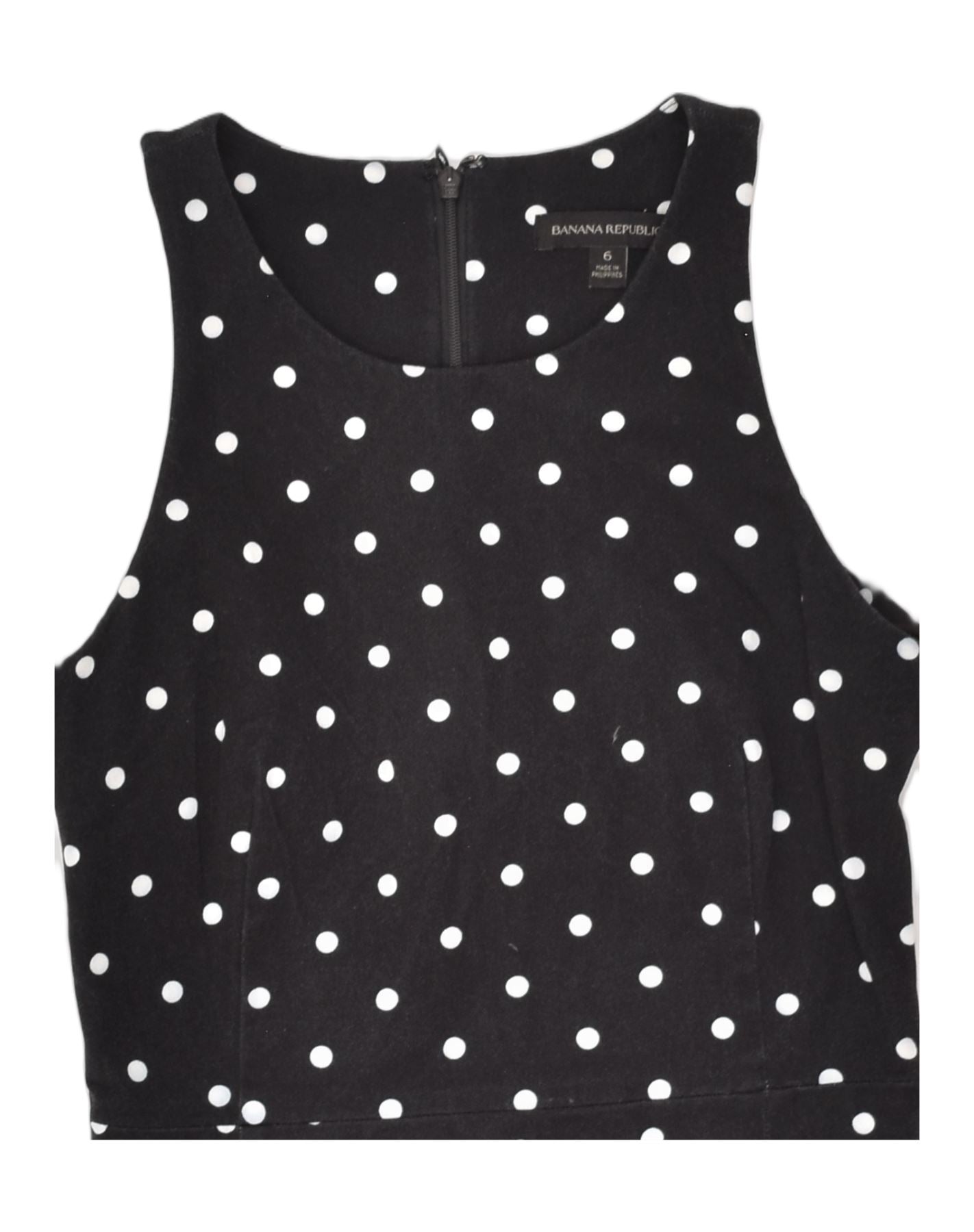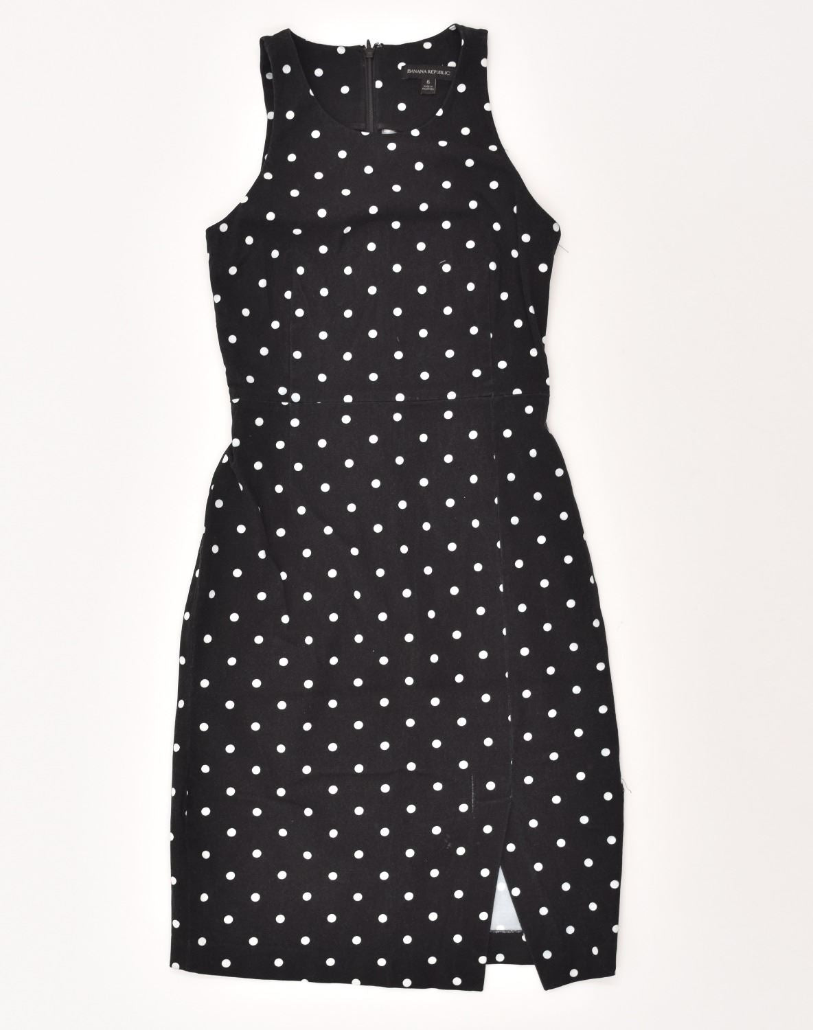BANANA REPUBLIC Vestido básico feminino US 6 médio preto bolinhas rayon