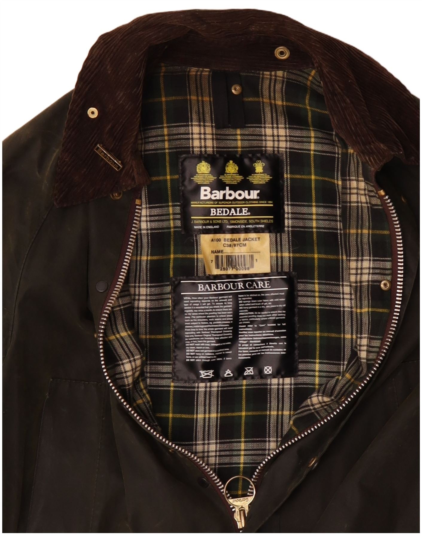 Jaqueta masculina de algodão encerado BARBOUR Bedale Reino Unido 38 médio cáqui