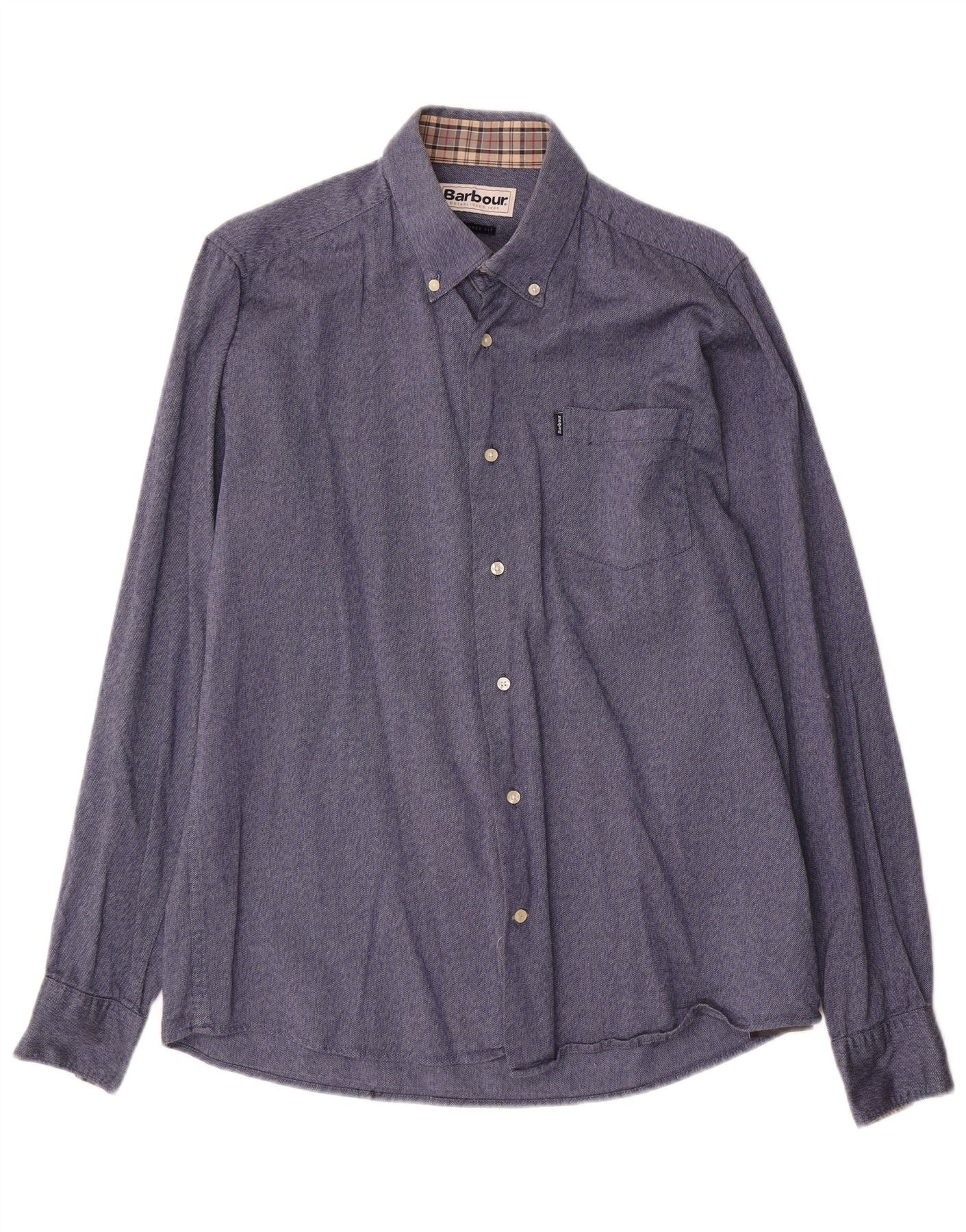 - Descrição da IA: Esta camisa jeans masculina Barbour é confeccionada em tecido 100 algodão em um tom clássico de azul. Possui decote com gola e botões frontais completos para um visual refinado. As mangas compridas terminam com punhos abotoados. Um único bolso no peito acrescenta detalhes práticos. O ajuste personalizado oferece uma silhueta inteligente e contemporânea, perfeita para um estilo versátil.