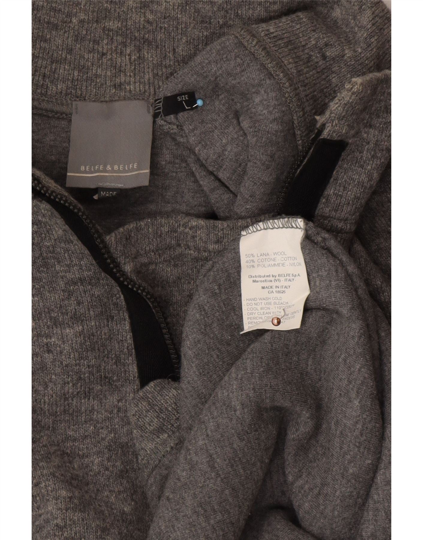 Suéter masculino BELFE & BELFE com zíper e gola grande de lã cinza