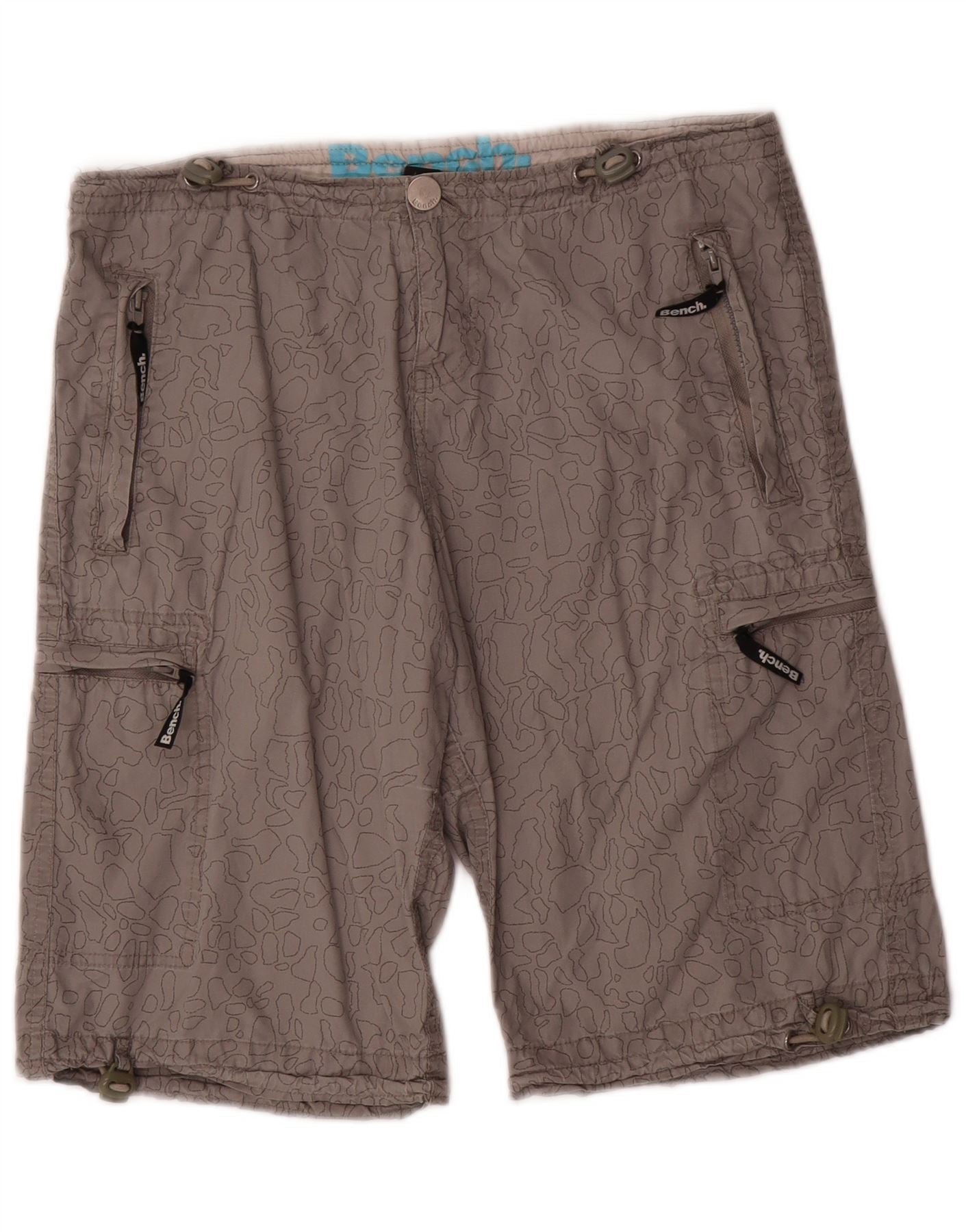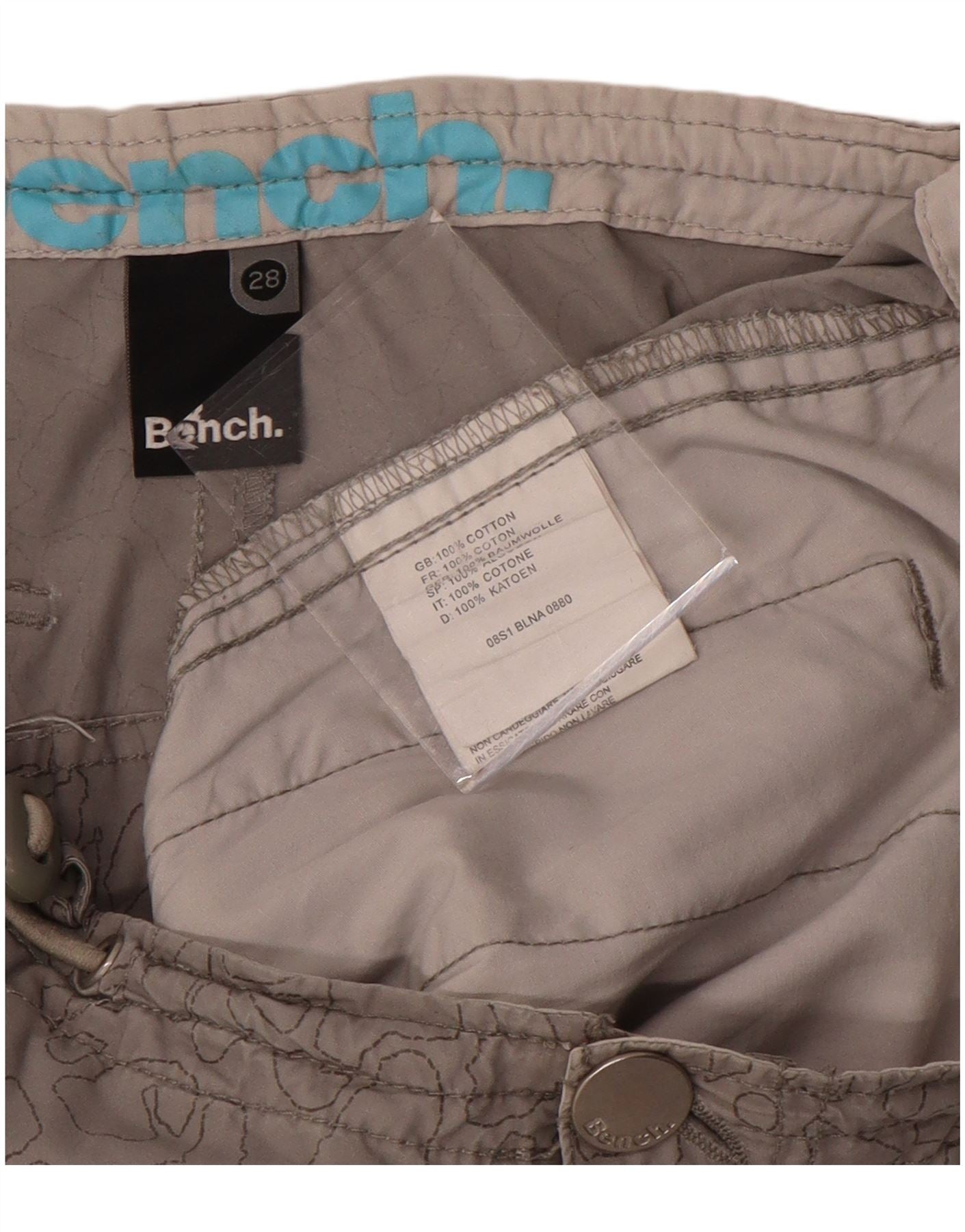 BENCH Mens Cargo Shorts W28 Pequeno Algodão Geométrico Cinza
