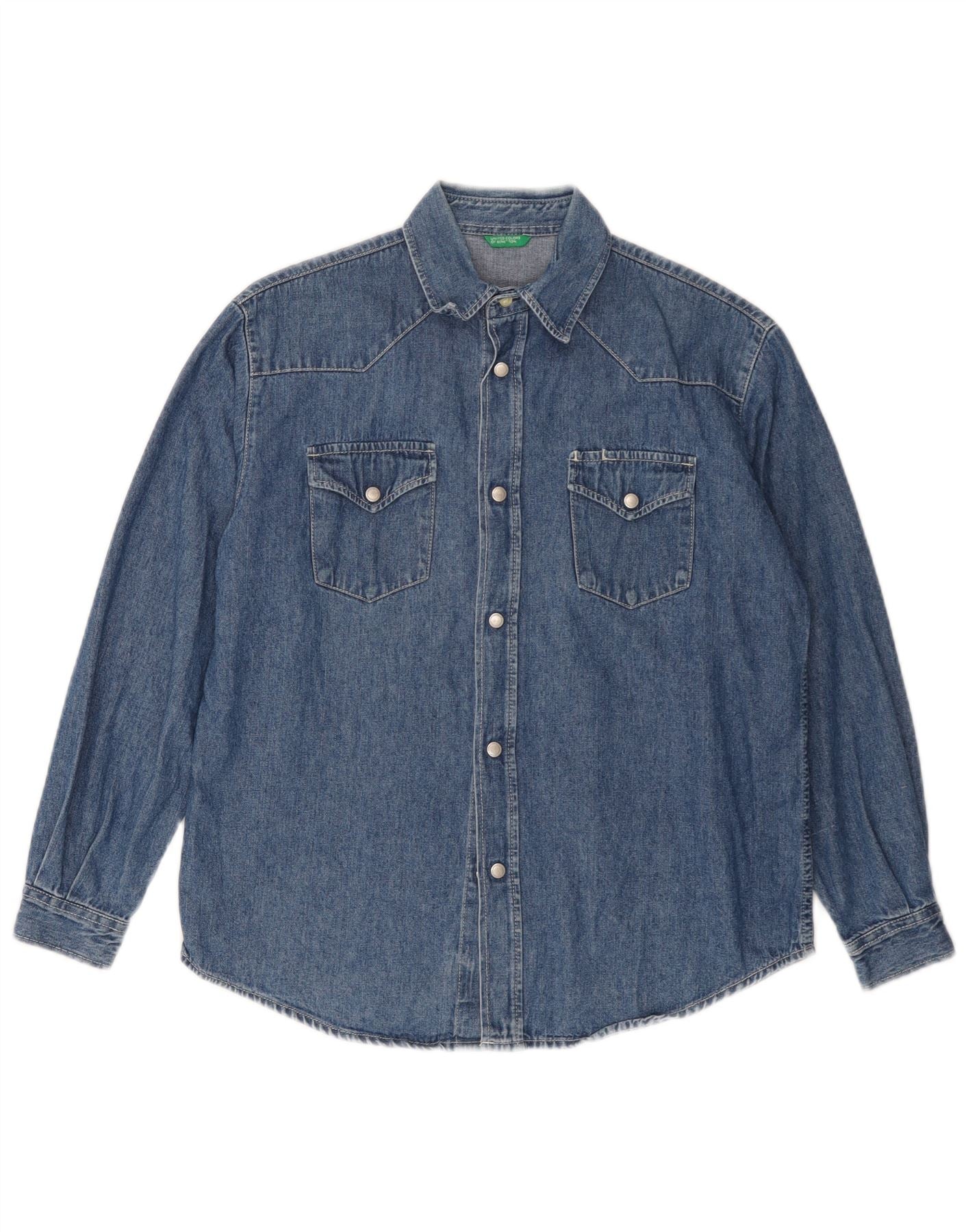 Camisa jeans masculina BENETTON 9-10 anos grande algodão azul