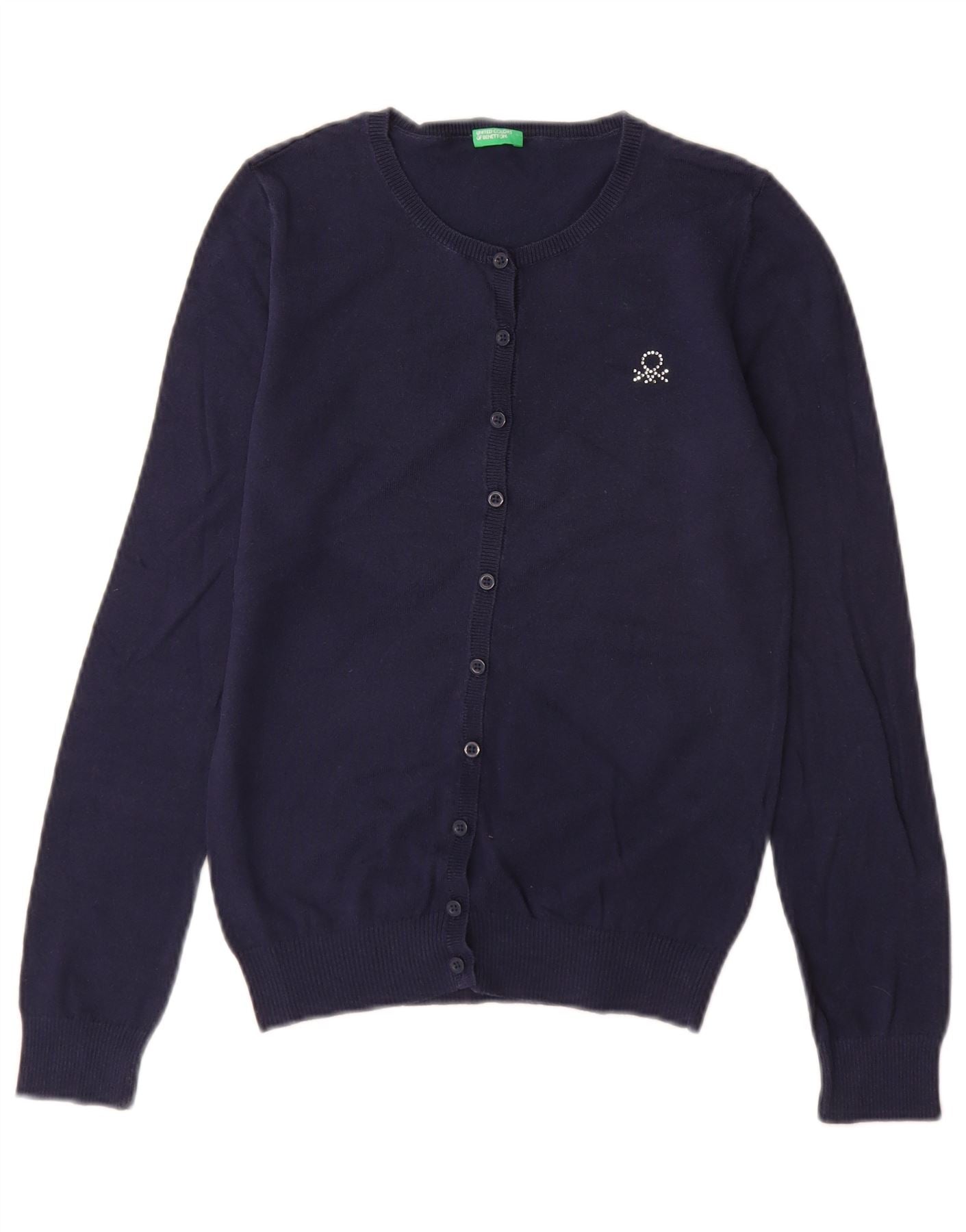 Suéter cardigã feminino BENETTON 13-14 anos 3XL algodão azul marinho