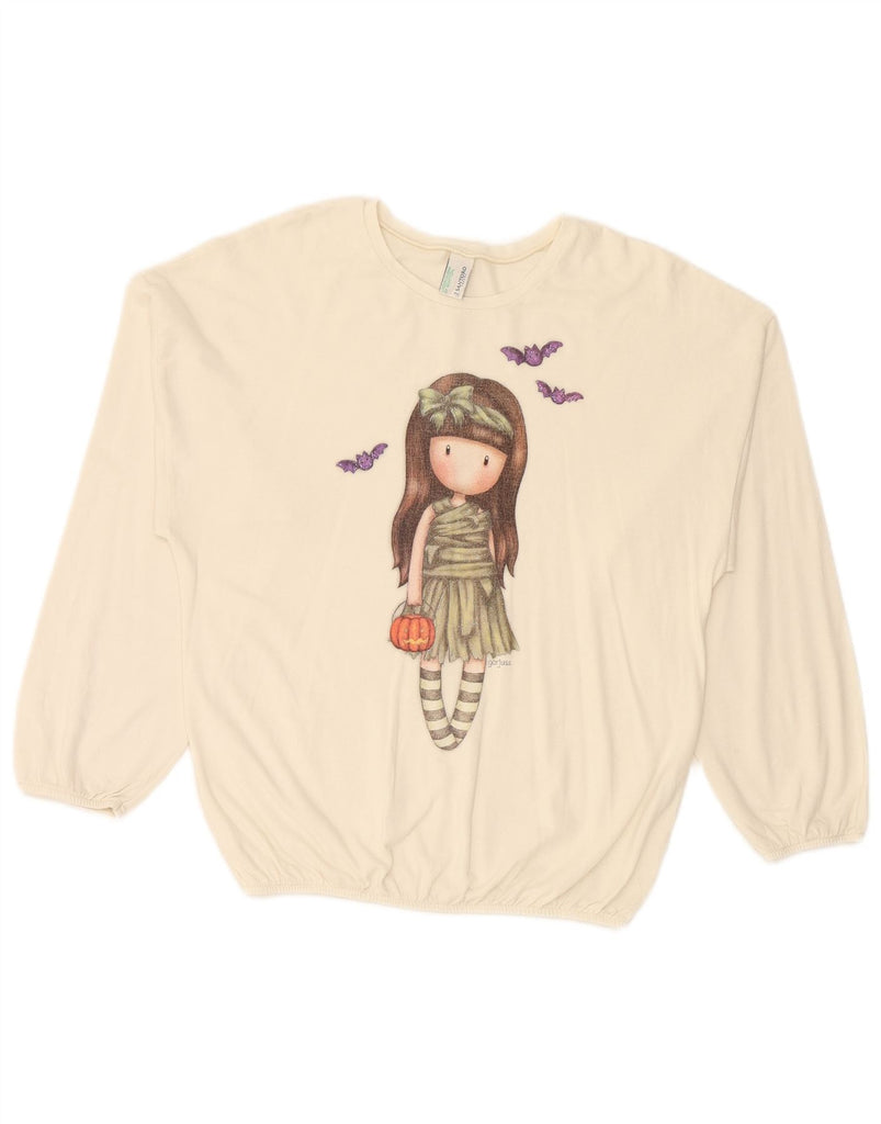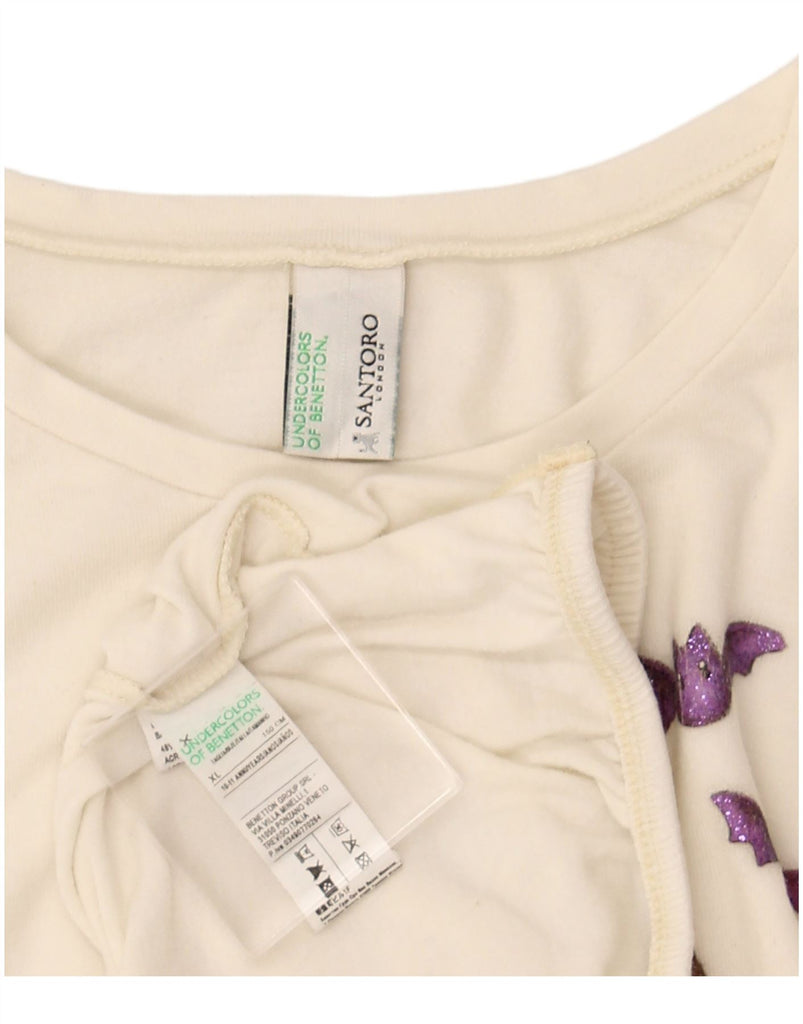 BENETTON Girls Graphic Boat Neck Jumper Sweater 10-11 Years XL Off White