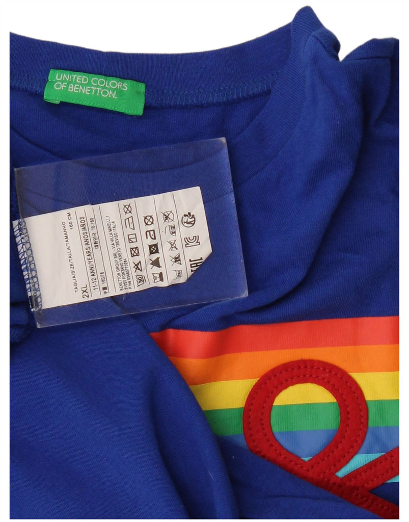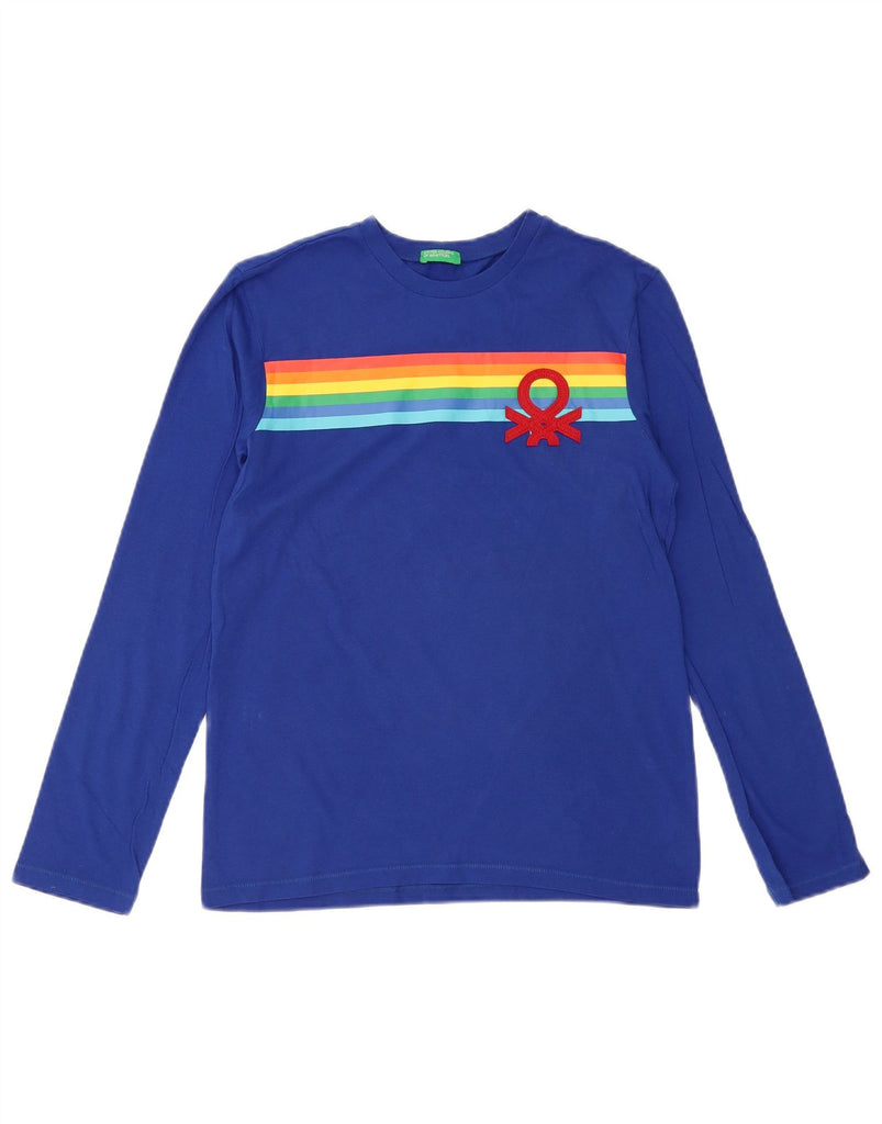 BENETTON Girls Graphic Top Long Sleeve 11-12 Years 2XL Blue Striped Cotton