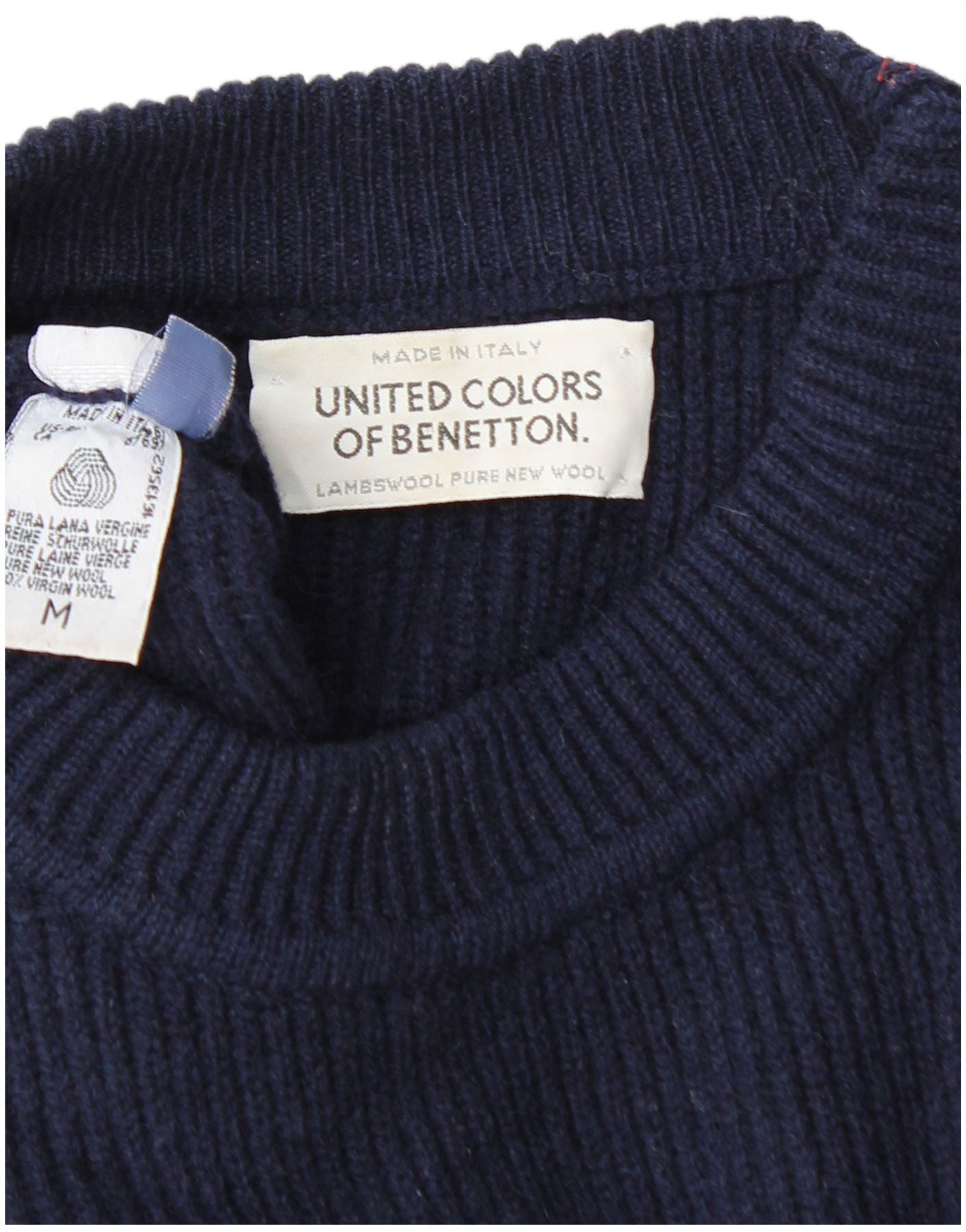 Home > Roupas Vintage Benetton > masculino > Suéter masculino BENETTON com gola redonda, lã virgem azul marinho médio