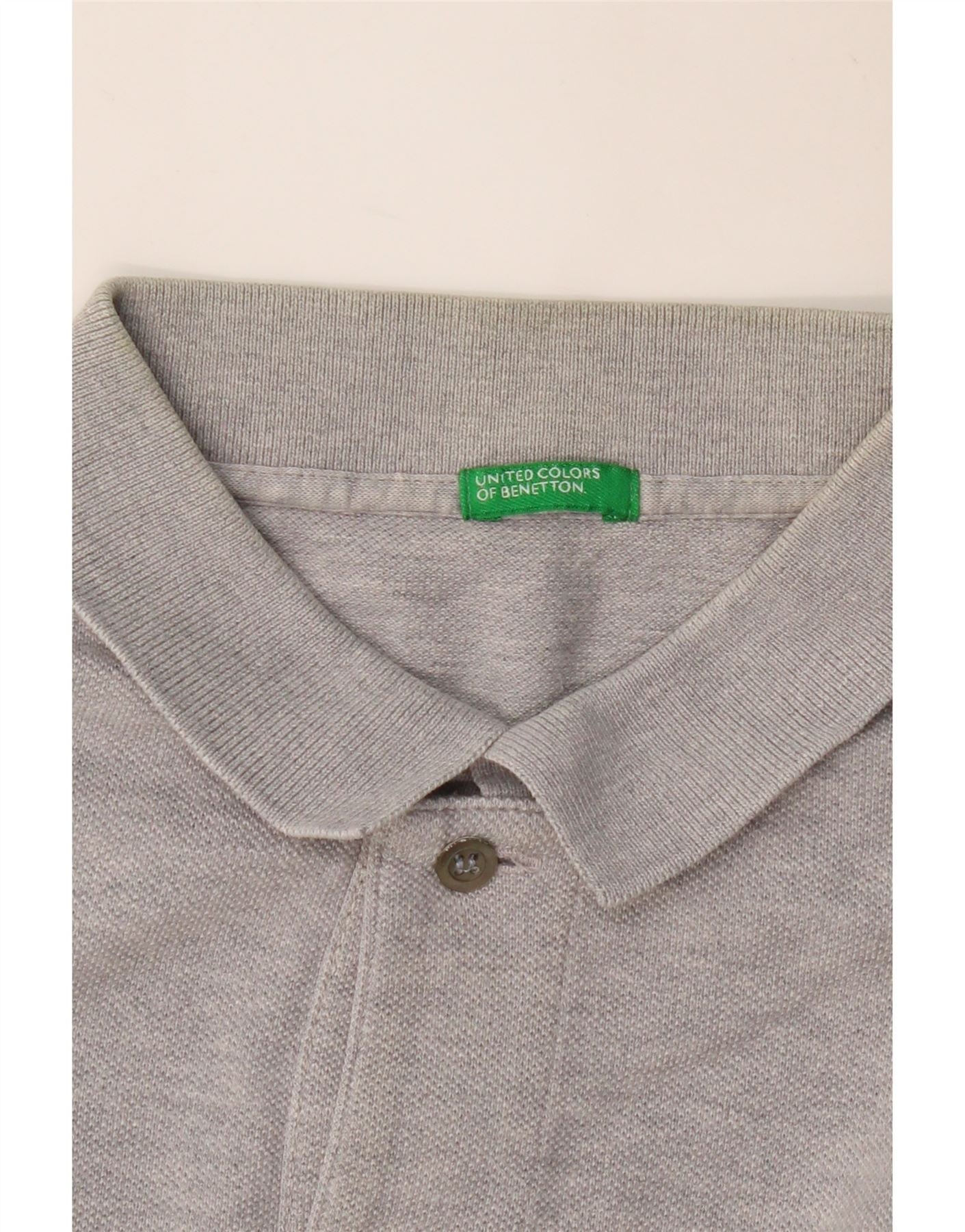Home > Roupas Vintage Benetton > masculino > Camisa polo masculina de manga comprida BENETTON cinza médio manchado