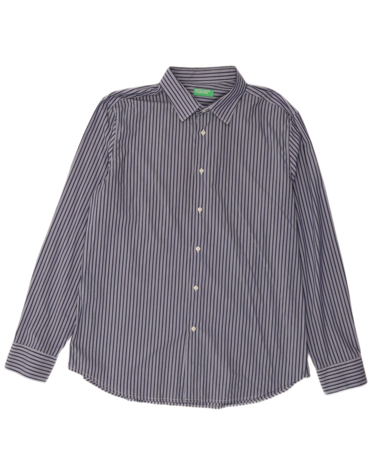 Camisa masculina Benetton 2XL algodão listrado azul marinho