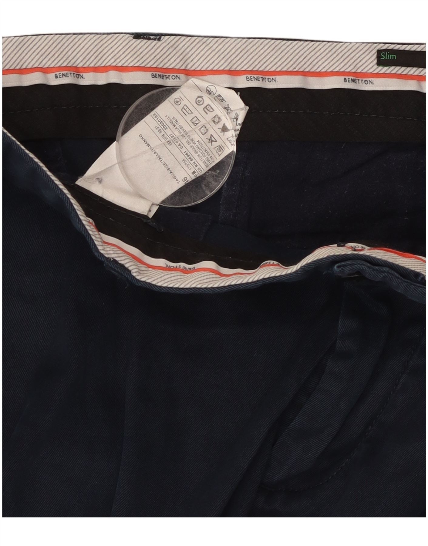 BENETTON Mens Slim Chino Trousers IT 46 Small W32 L32 Navy Blue Cotton