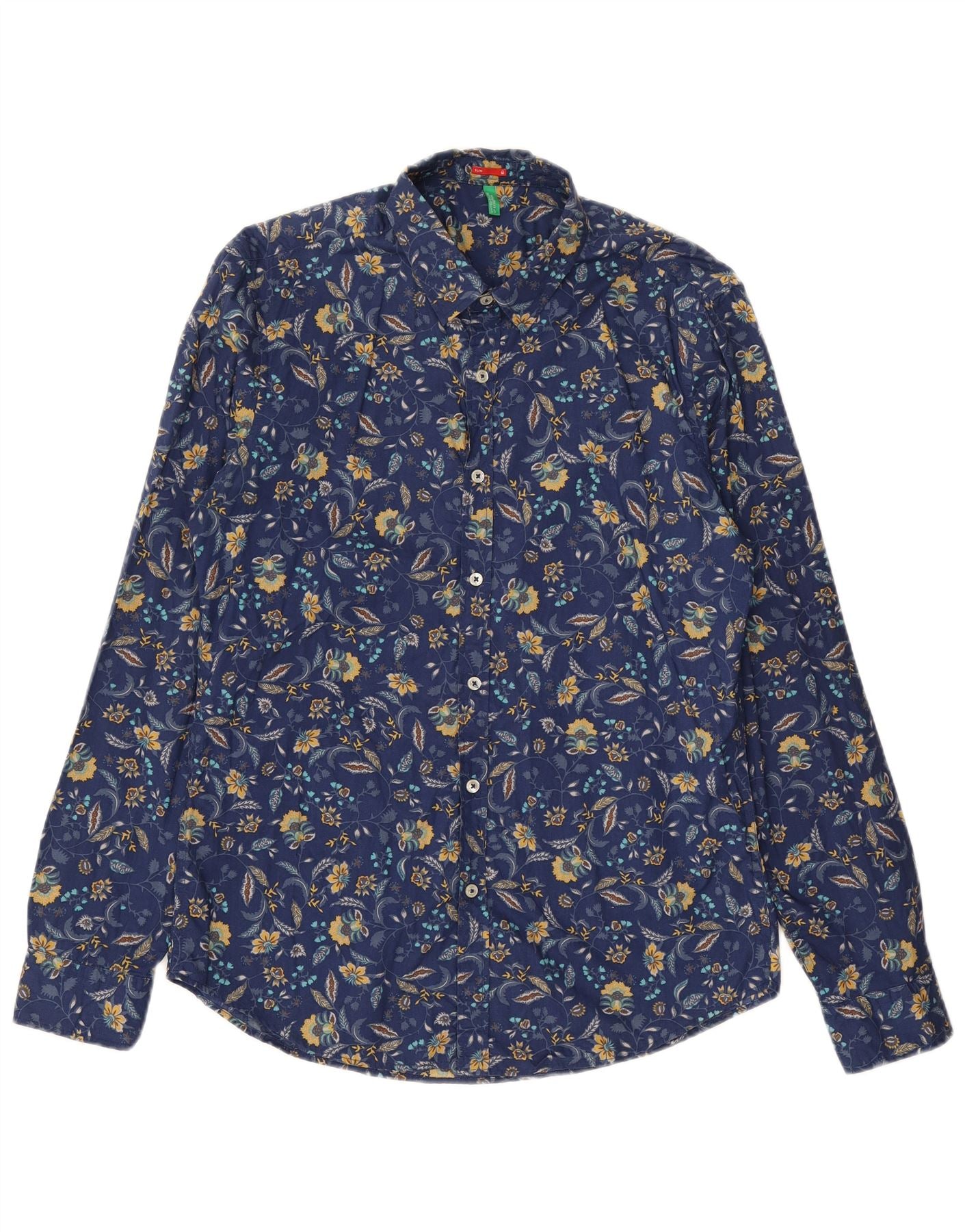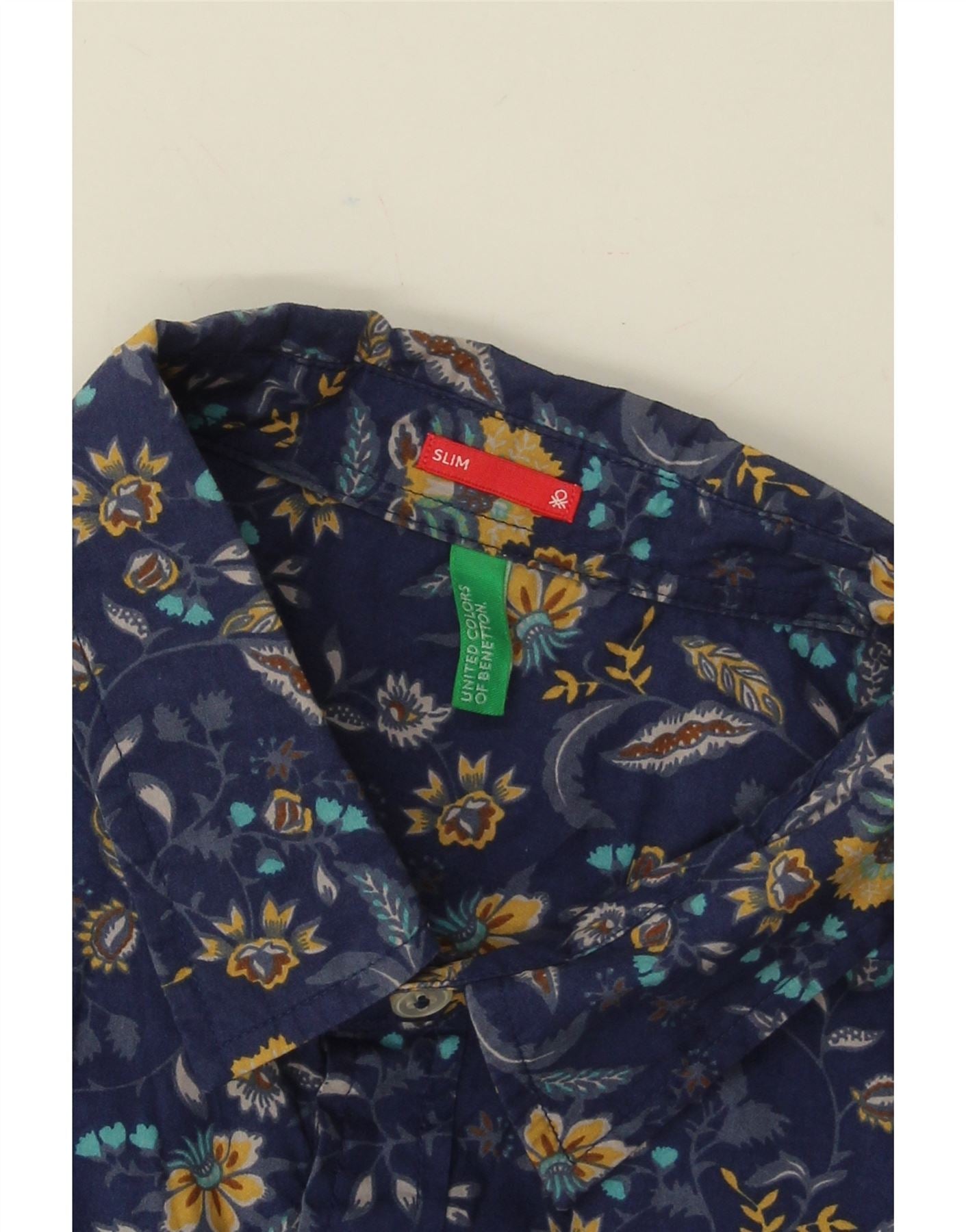 Home > Roupas Vintage Benetton > masculino > Camisa masculina slim BENETTON média azul marinho floral