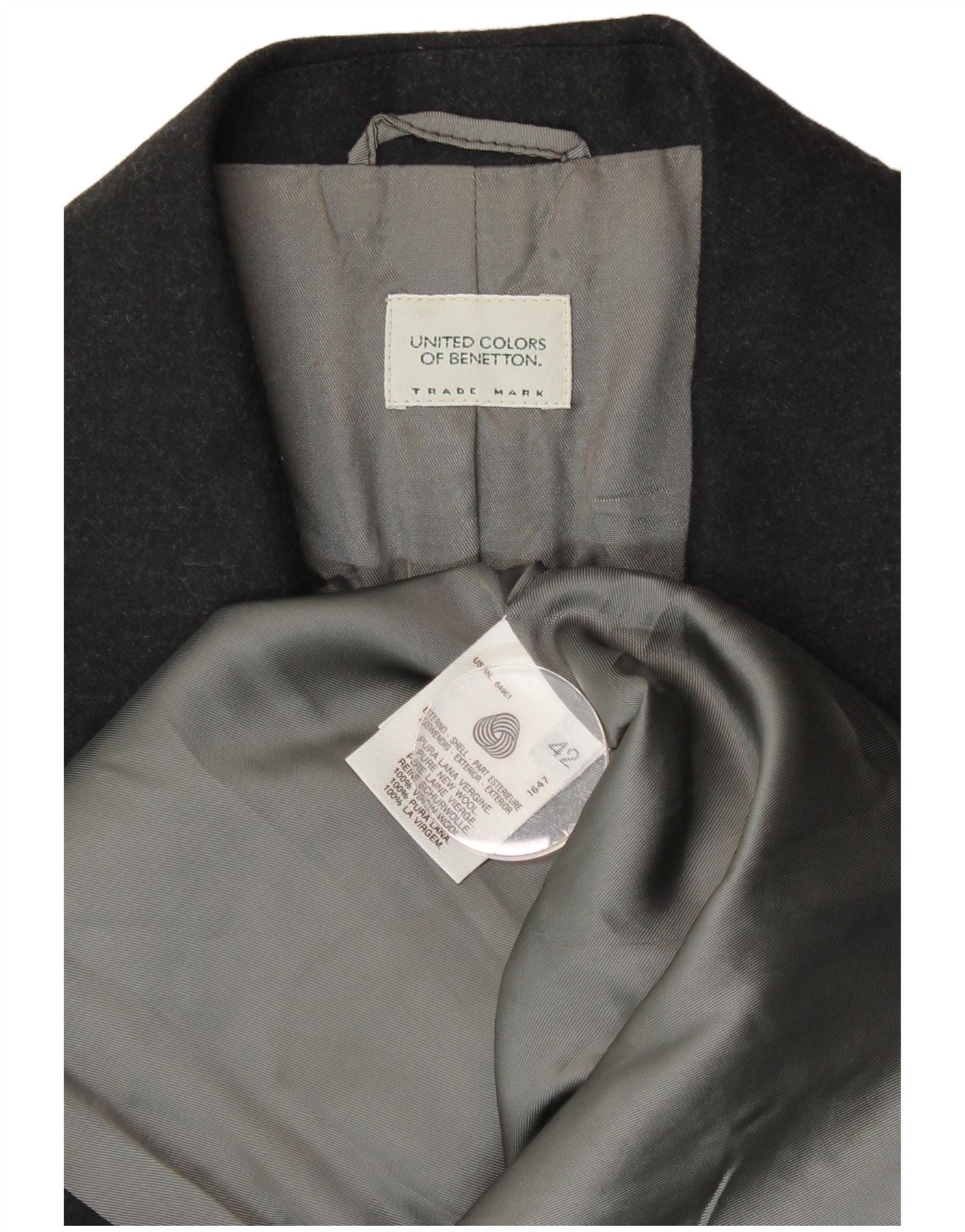 Jaqueta blazer feminina de 2 botões BENETTON IT 42 médio preto lã nova