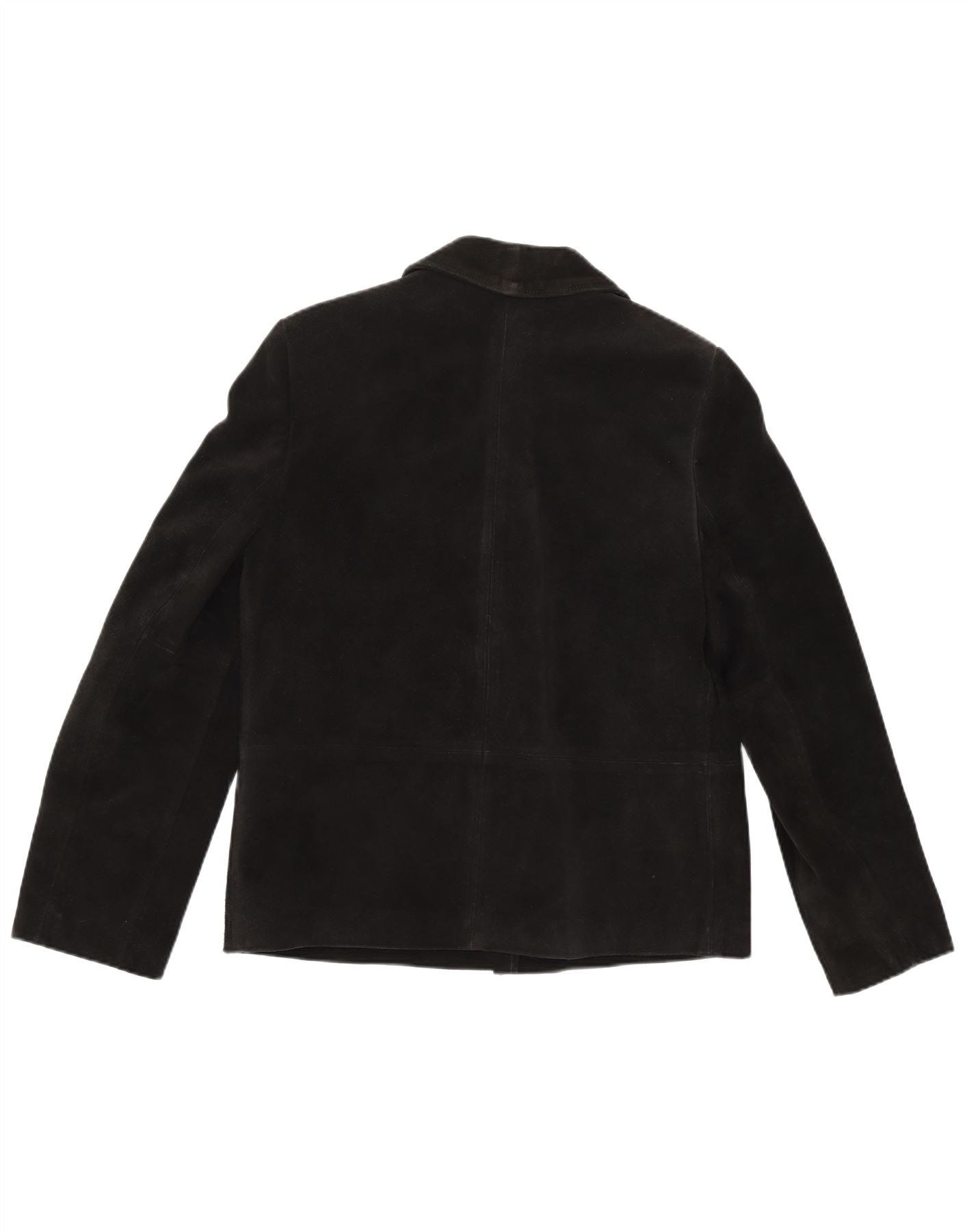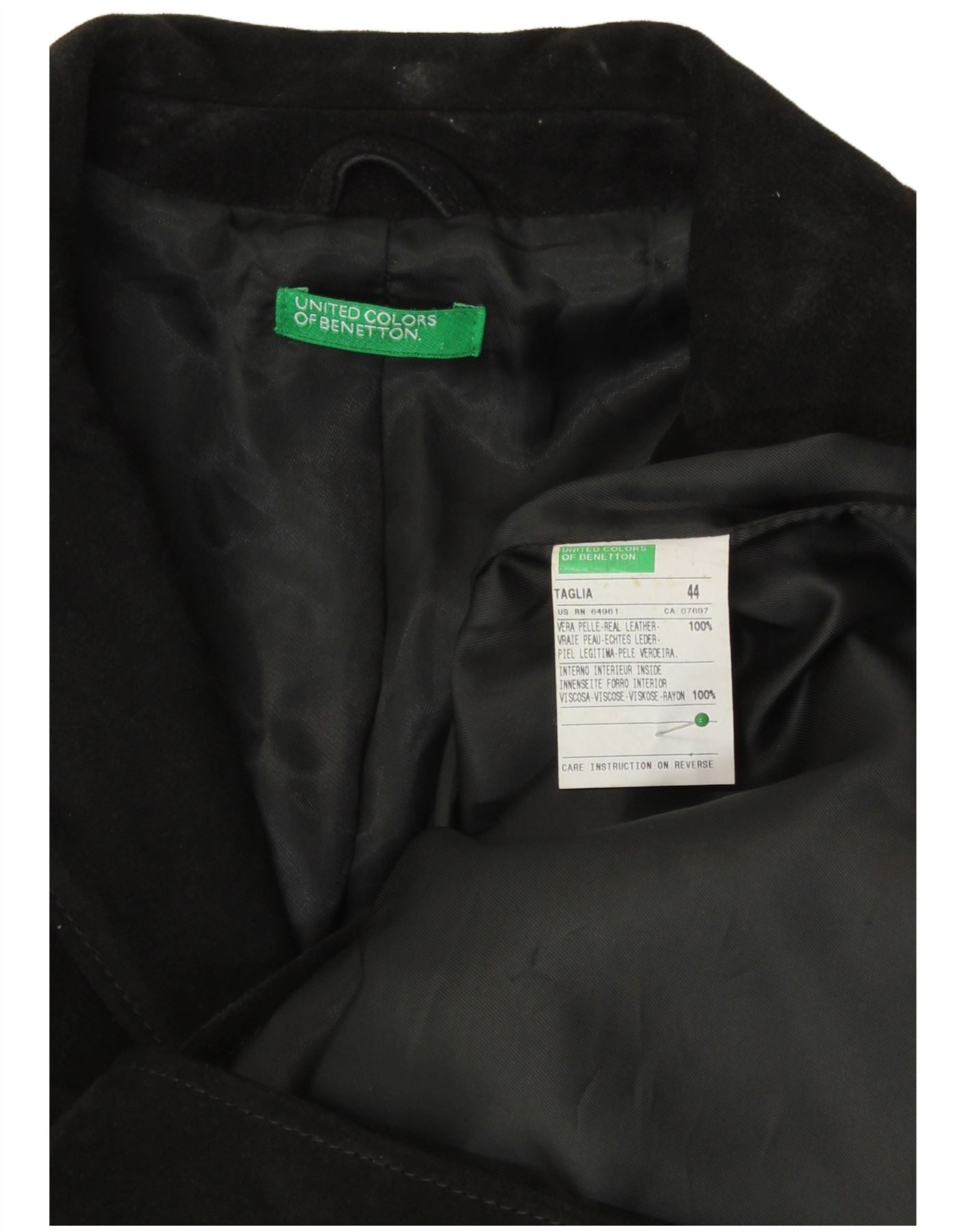 Jaqueta blazer feminina de camurça com 3 botões BENETTON IT 44 couro preto médio
