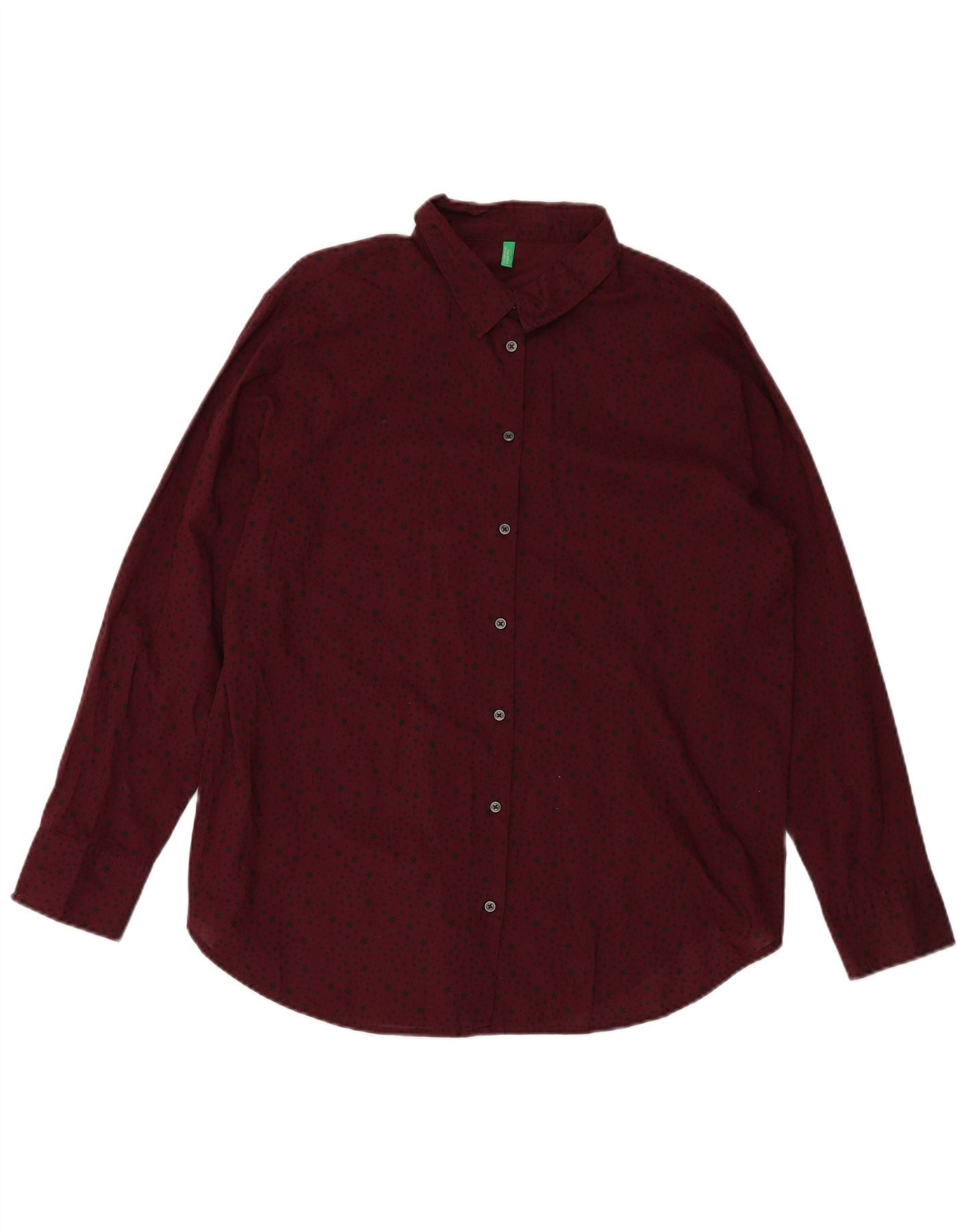 Camisa feminina com padrão abstrato BENETTON Reino Unido 18 XL Borgonha