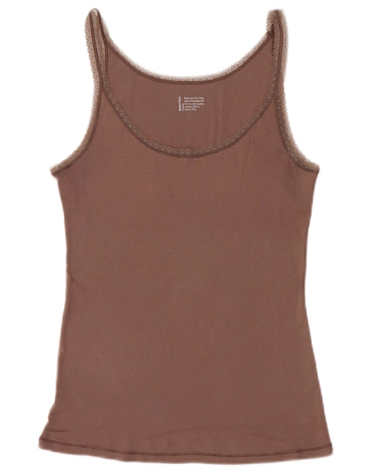 Top cami feminino BENETTON Reino Unido 14 grande algodão marrom