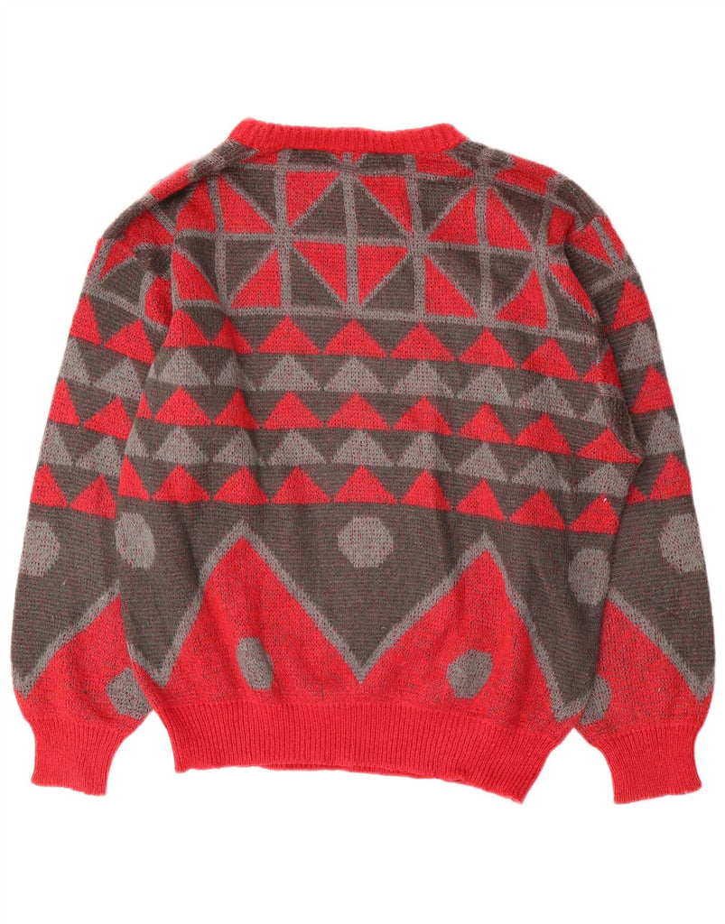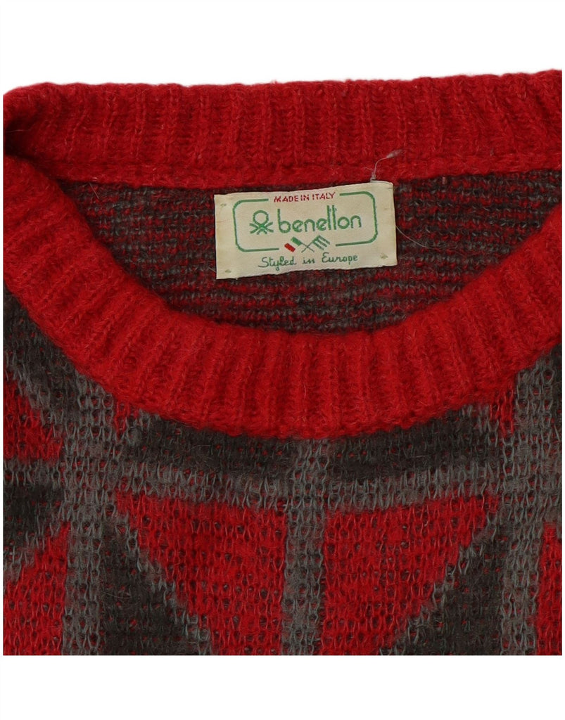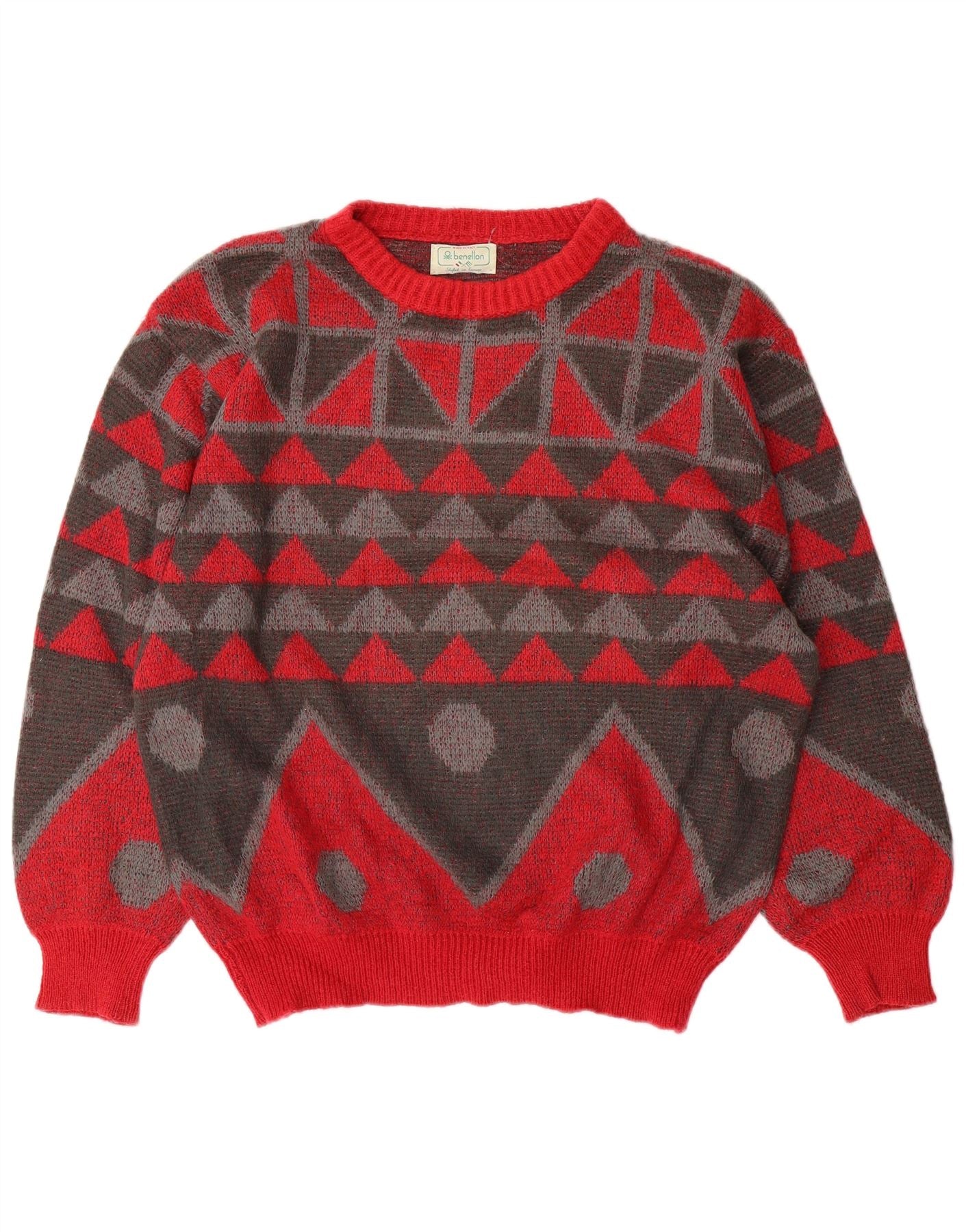 Suéter feminino BENETTON com gola redonda UK 18 XL vermelho geométrico