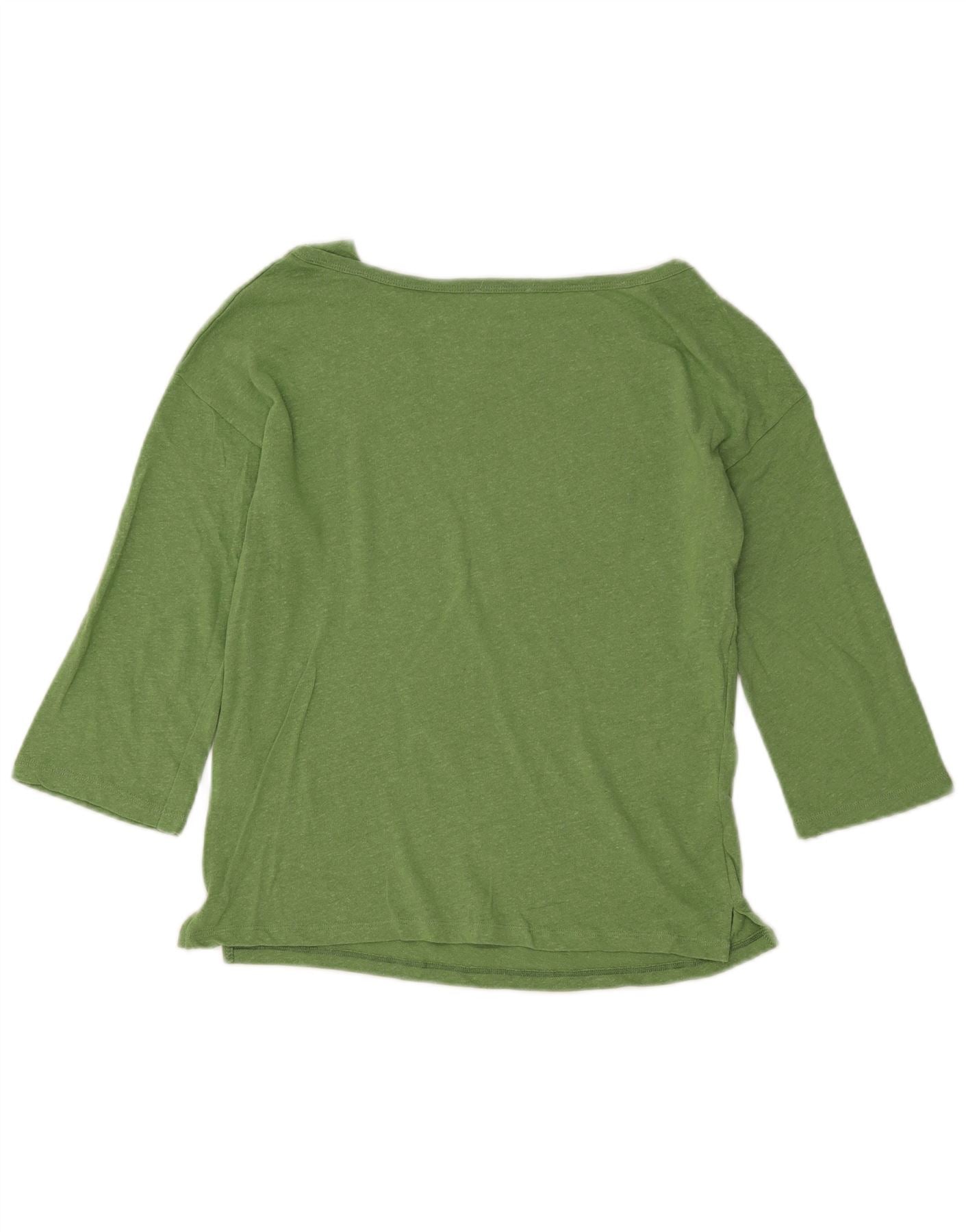 Top cropped feminino BENETTON manga 3/4 Reino Unido 12 algodão manchado verde médio