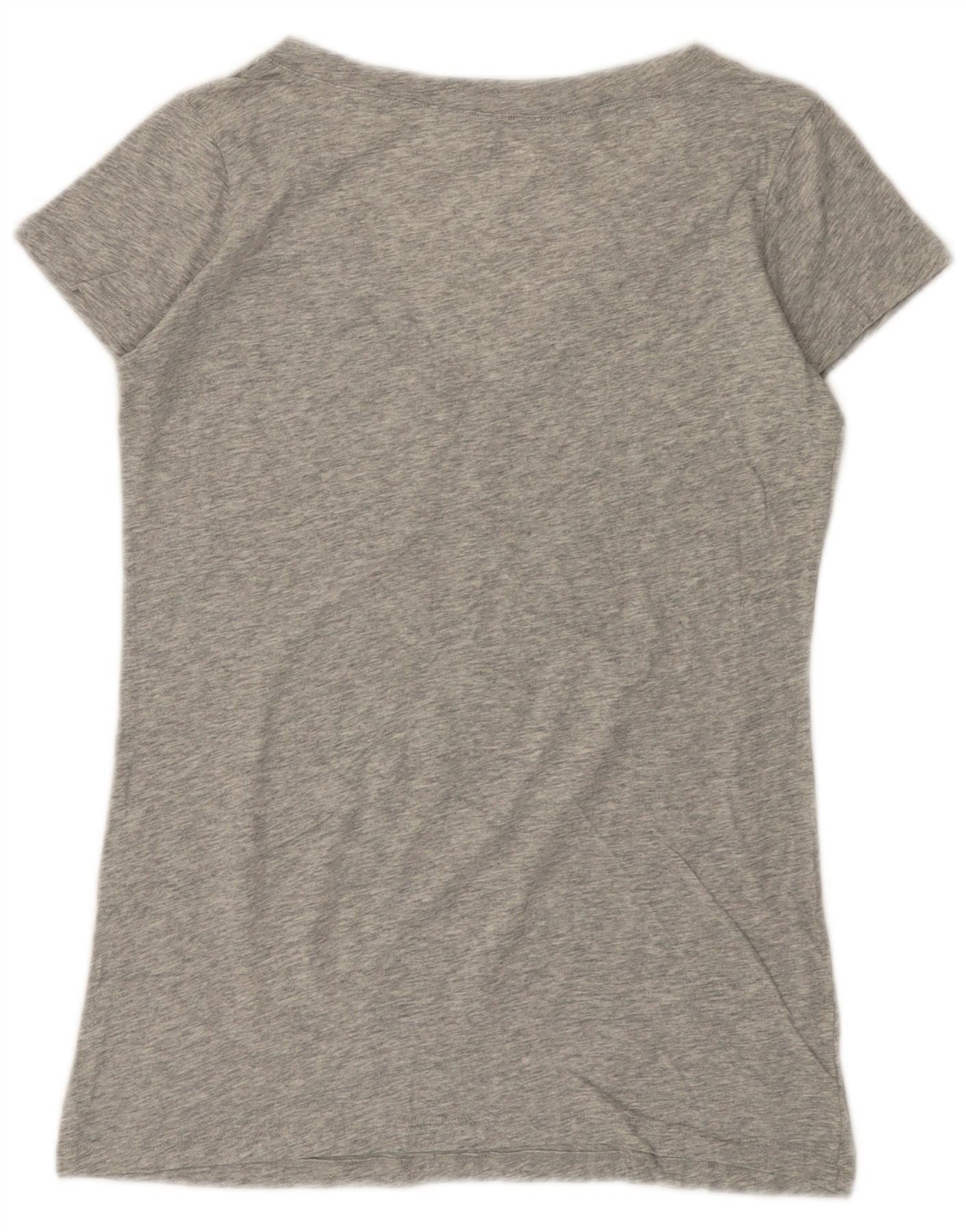 Camiseta feminina gráfica BENETTON UK 12 cinza médio manchado