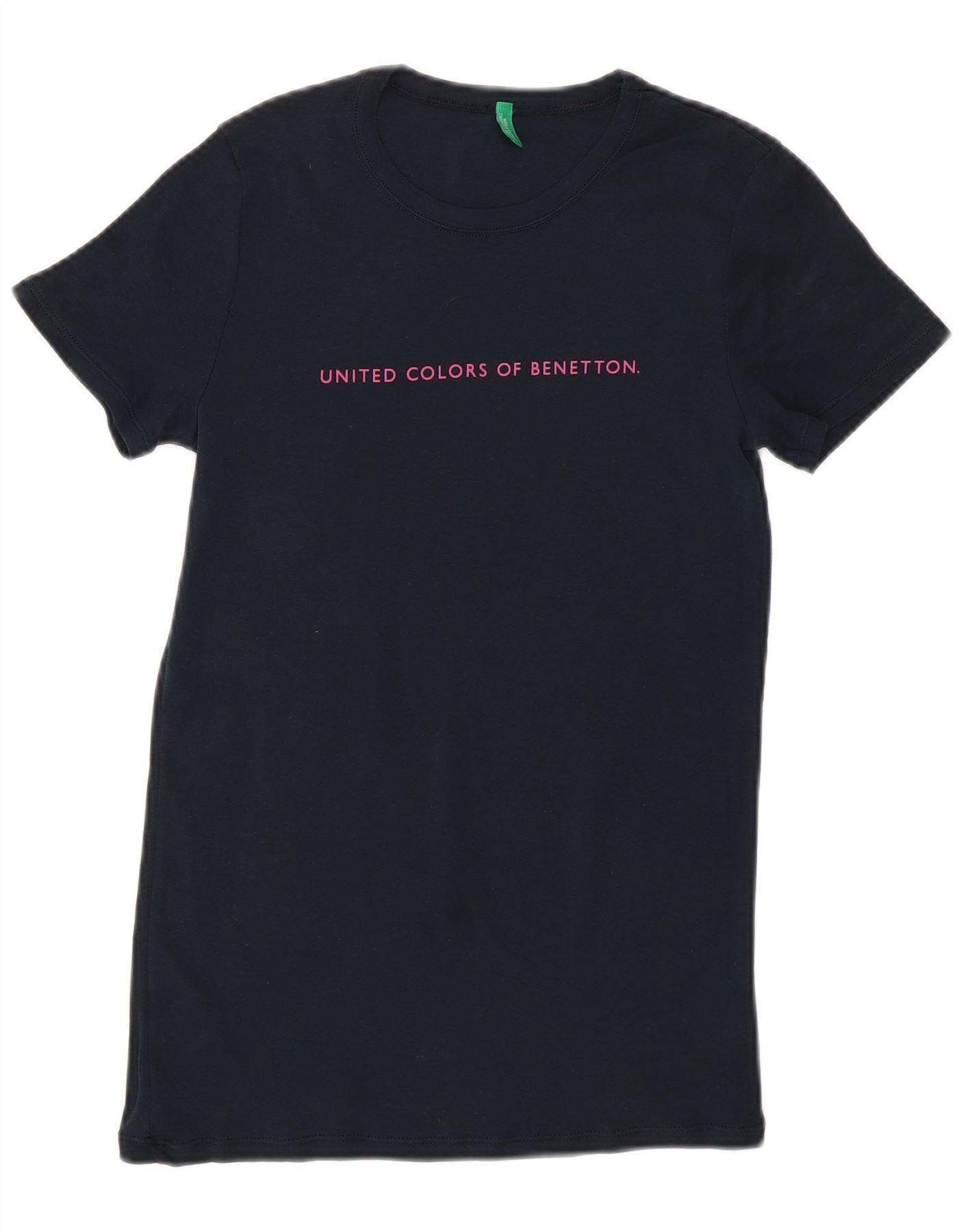 Camiseta feminina gráfica BENETTON UK 12 algodão azul marinho médio