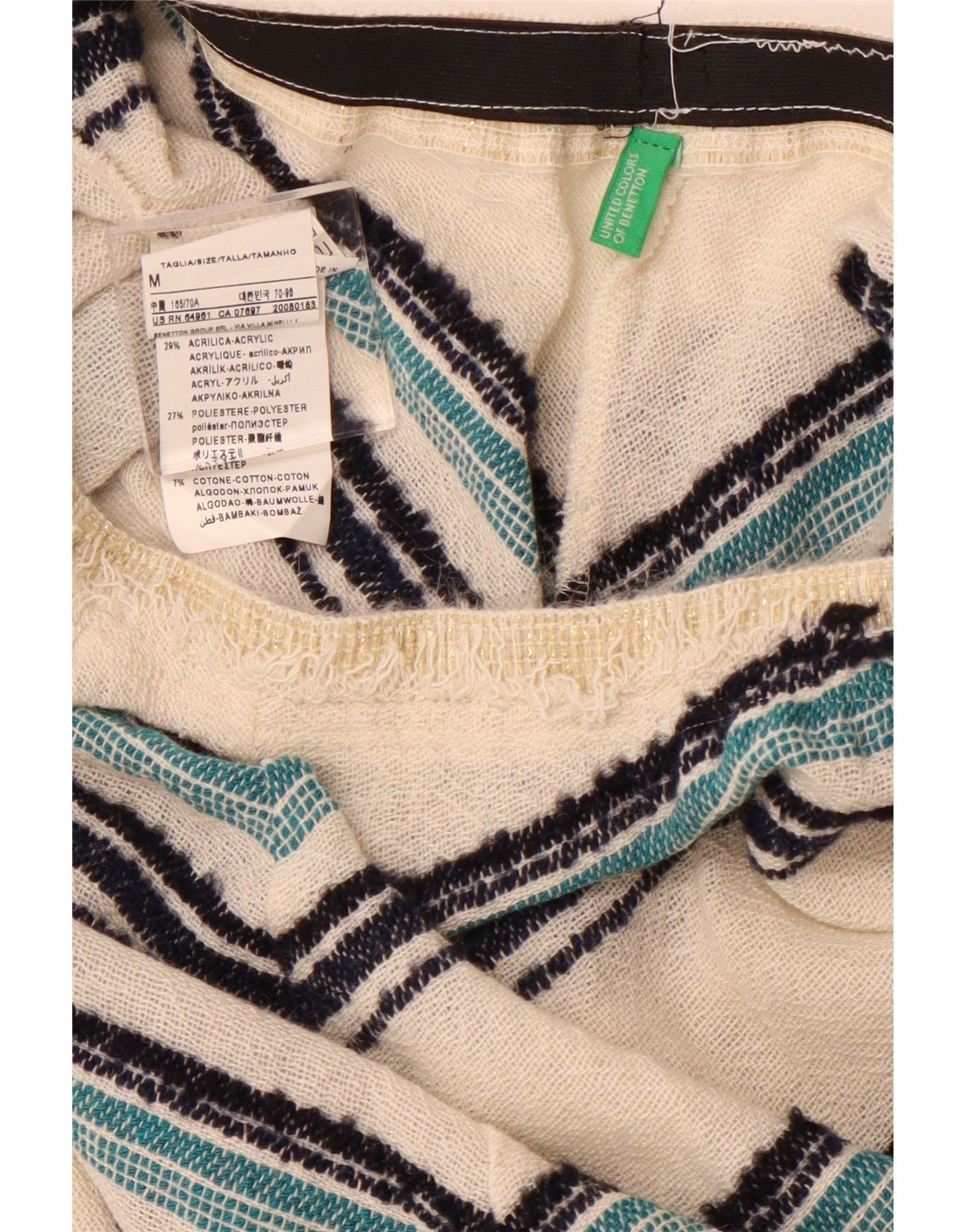 Saia feminina BENETTON cintura alta evasê médio W28 off white chevron lã