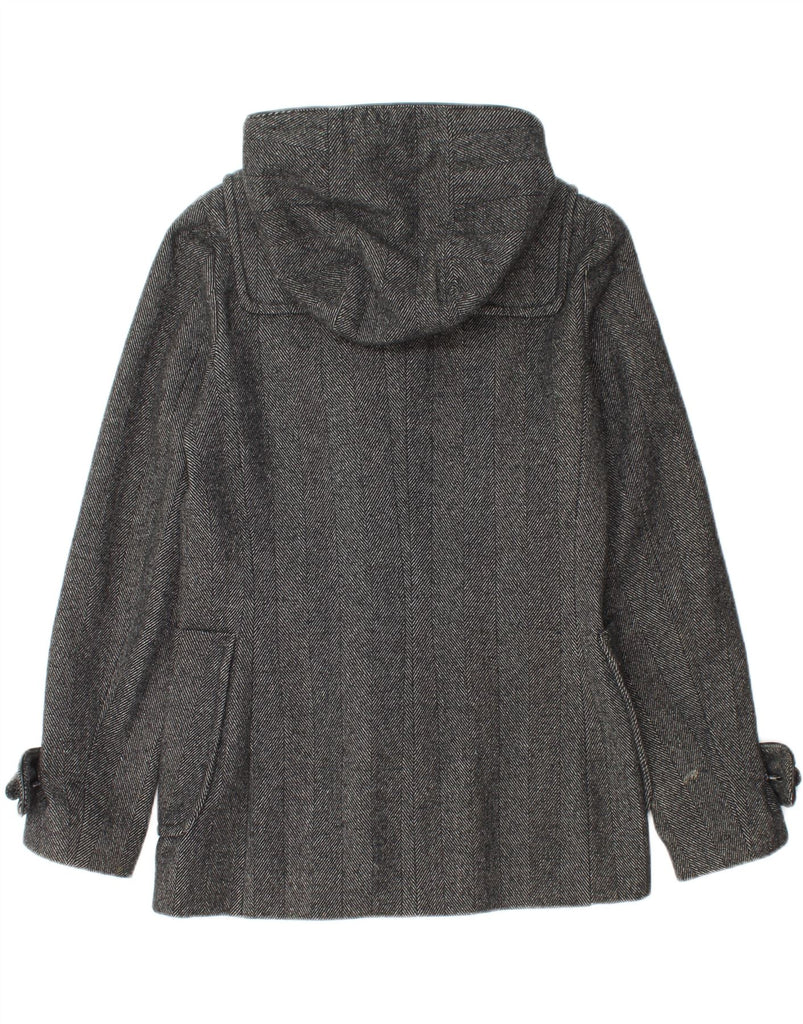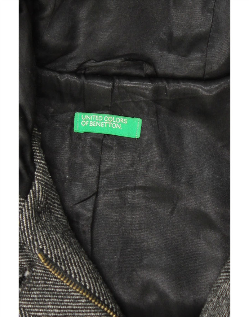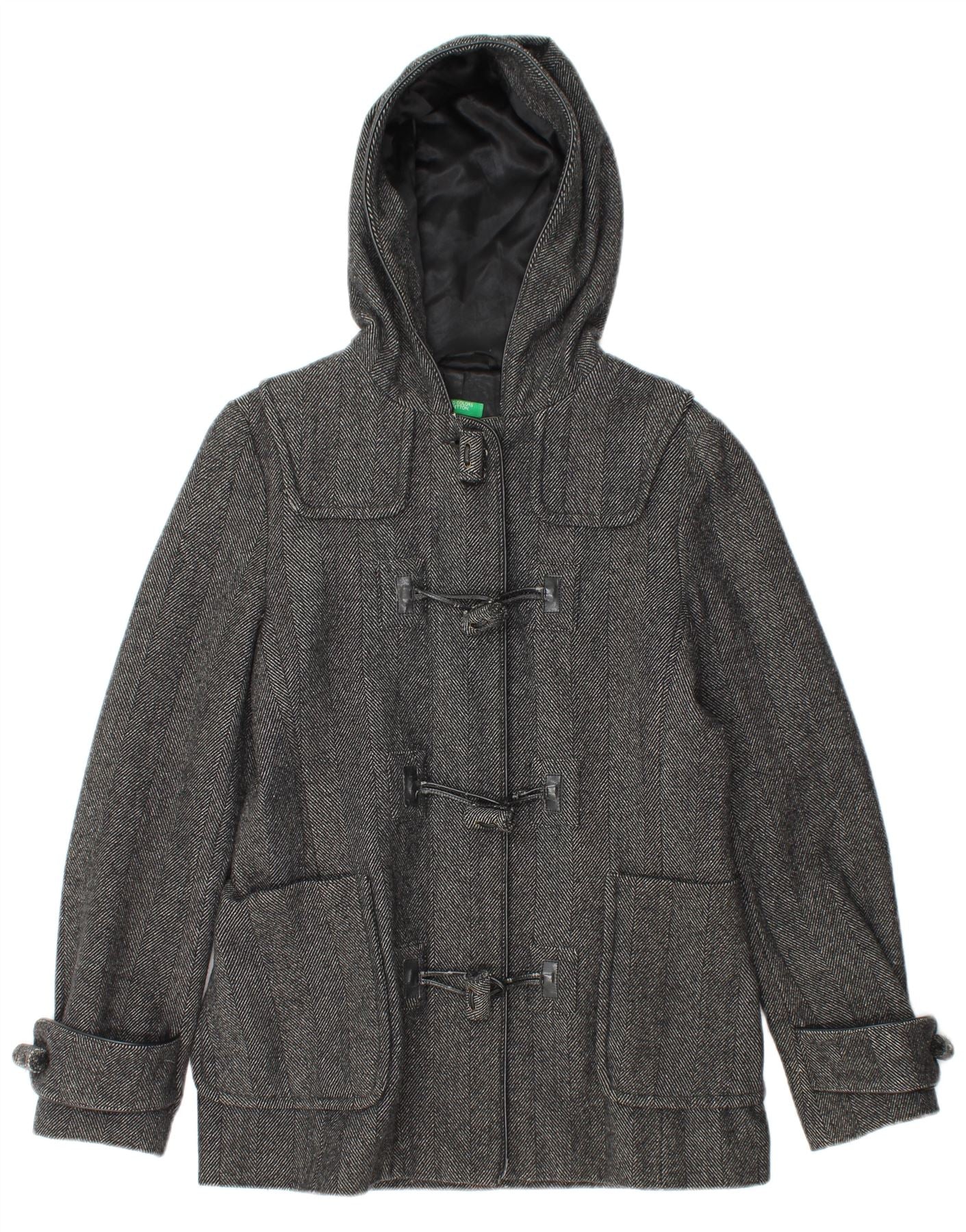 Casaco duffle feminino com capuz BENETTON IT 44 lã espinha de peixe preta média