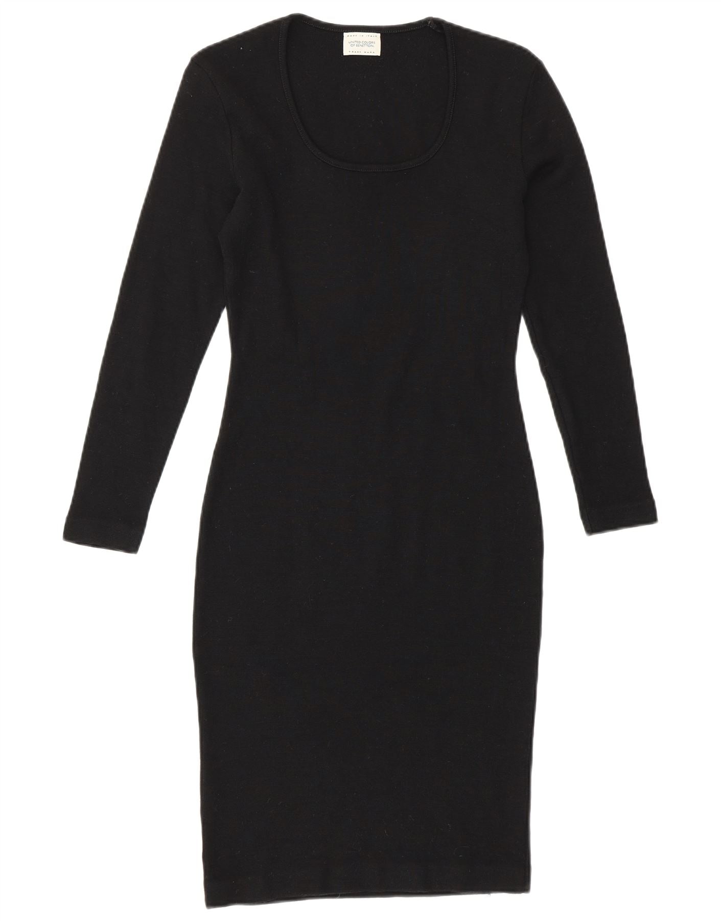 Vestido bodycon feminino de manga comprida BENETTON Reino Unido 8 pequeno preto