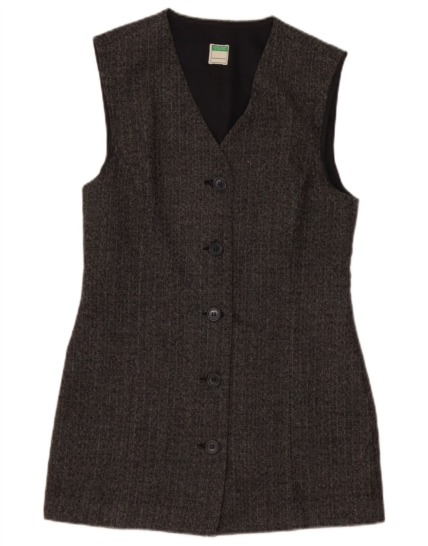 Home > Roupas Vintage Benetton > mulheres > Jaqueta blazer Longline feminina BENETTON Reino Unido 10 listras cinza pequenas